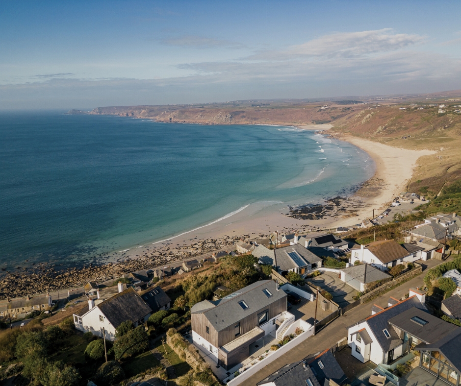 This striking five-bed contemporary house epitomises luxury coastal living. It maximises on its extraordinary setting and breathtaking sea views from the Isles of Scilly to Longships Lighthouse with feature floor to ceiling windows, where you’re overlooked only by seagulls and passing yachts.