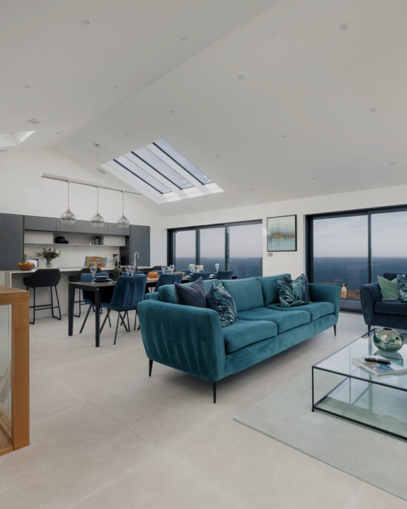 Heading back for a coffee is a cinch. You won’t miss out going back inside, either: at the back of the property is the kitchen and dining room, where bi-fold doors allow the views to take pride of place. To those wary of a draught, fear not- those fully glazed windows will ensure the bracing ocean winds are kept at bay in the colder months.