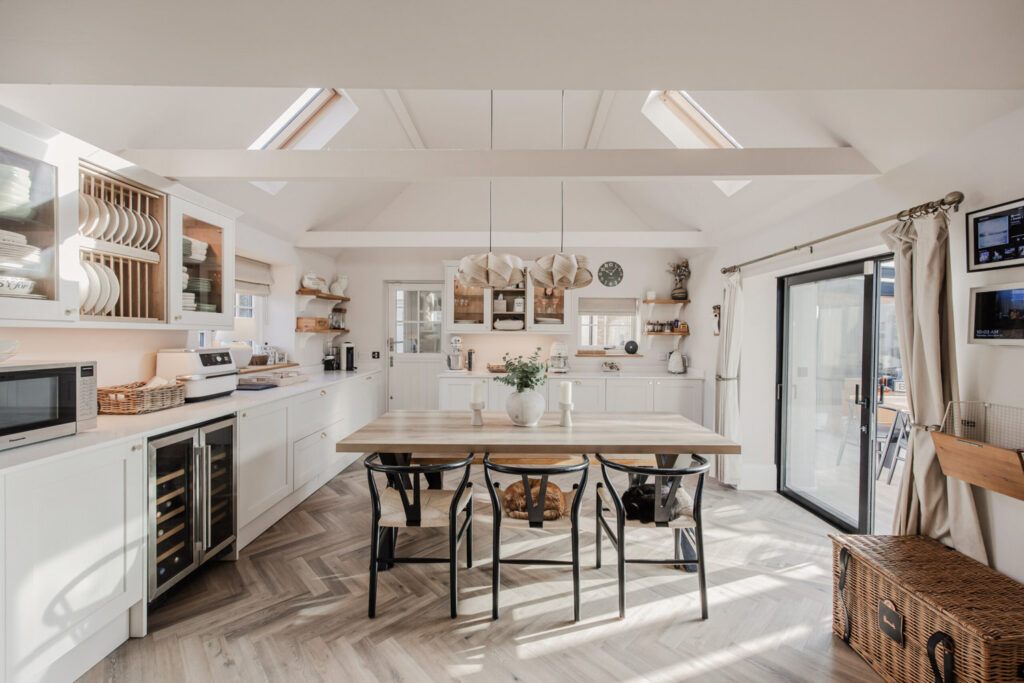 Light, bright, and breezy, the interiors of Hall Marsh House perfectly capture its location near the Norfolk coast. It’s as though every day is a summer here, natural light flooding in through the windows, bi-folding doors always open, and the colour scheme of each room picked so perfectly that it somehow lowers your cortisol levels, though you don’t like to admit to it.