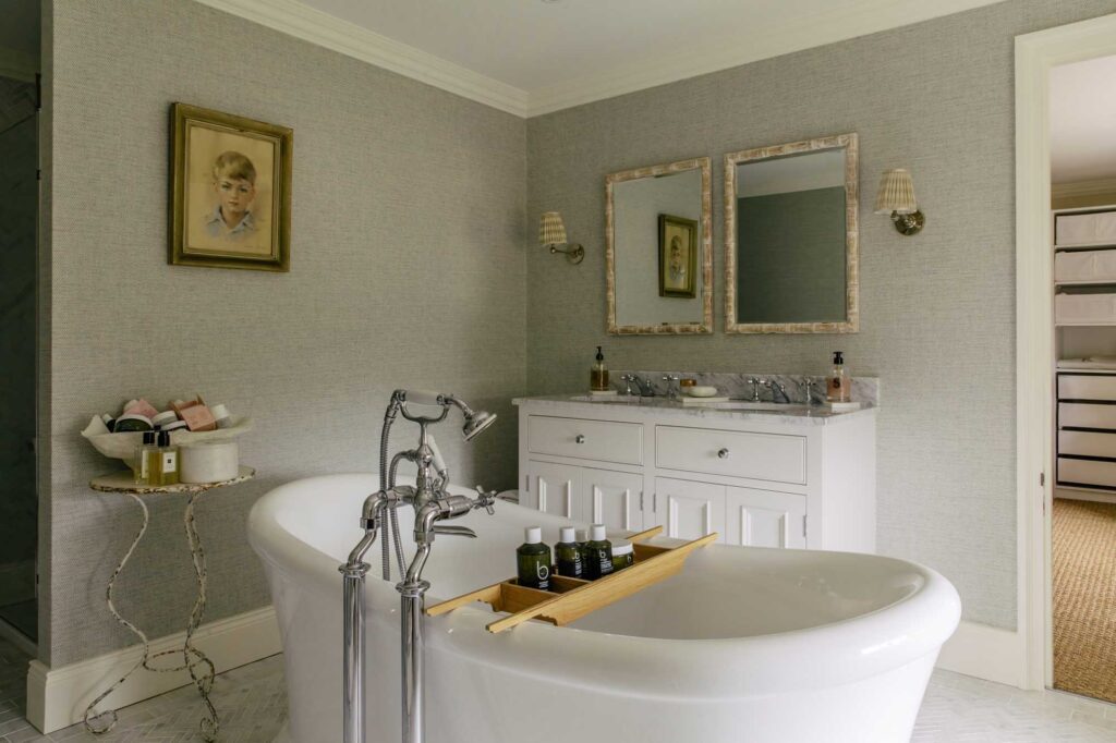 Bradley Garden House is the very definition of quiet luxury. At first glance, she’s well presented, sophisticated, and never brags. Look closer, however, and the sheer level of detail reveals itself. Sympathetically renovated by the current owners, there’s a Neptune kitchen handcrafted by Bridgewater Interiors, Hermès textiles, a hidden bar, and limestone and seagrass flooring throughout.