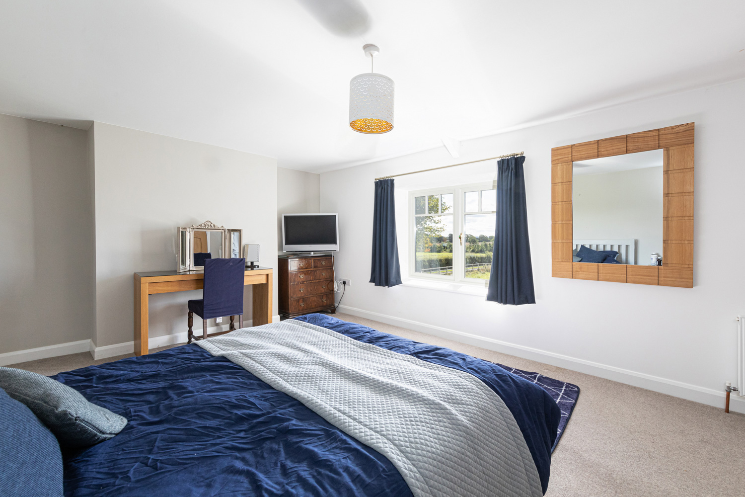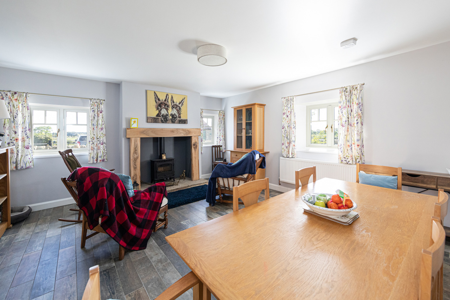 "A spacious farmhouse with panoramic countryside views"