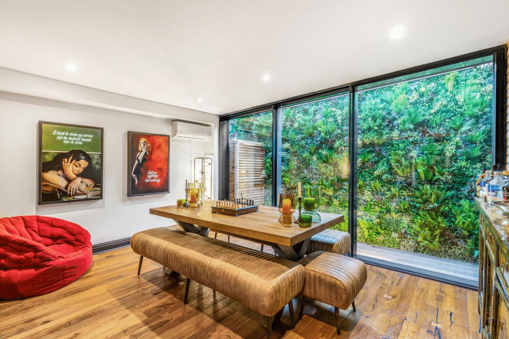How they host: Think crates doubling as side tables, a vintage sound system, mezcal poured without ceremony. Guests drift between the sofa and the vinyl collection while snacking on charcuterie boards that look like art. Low-lit, good tunes, and even better company.