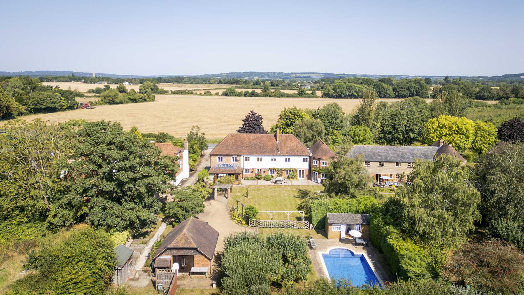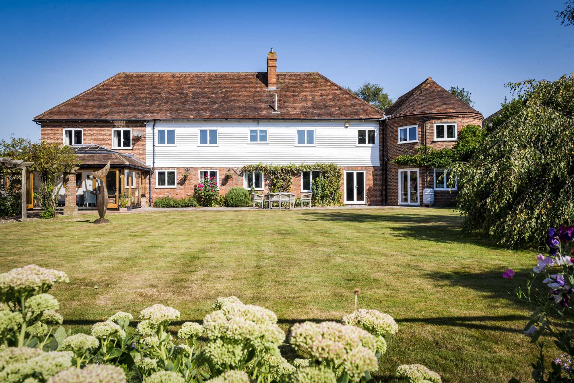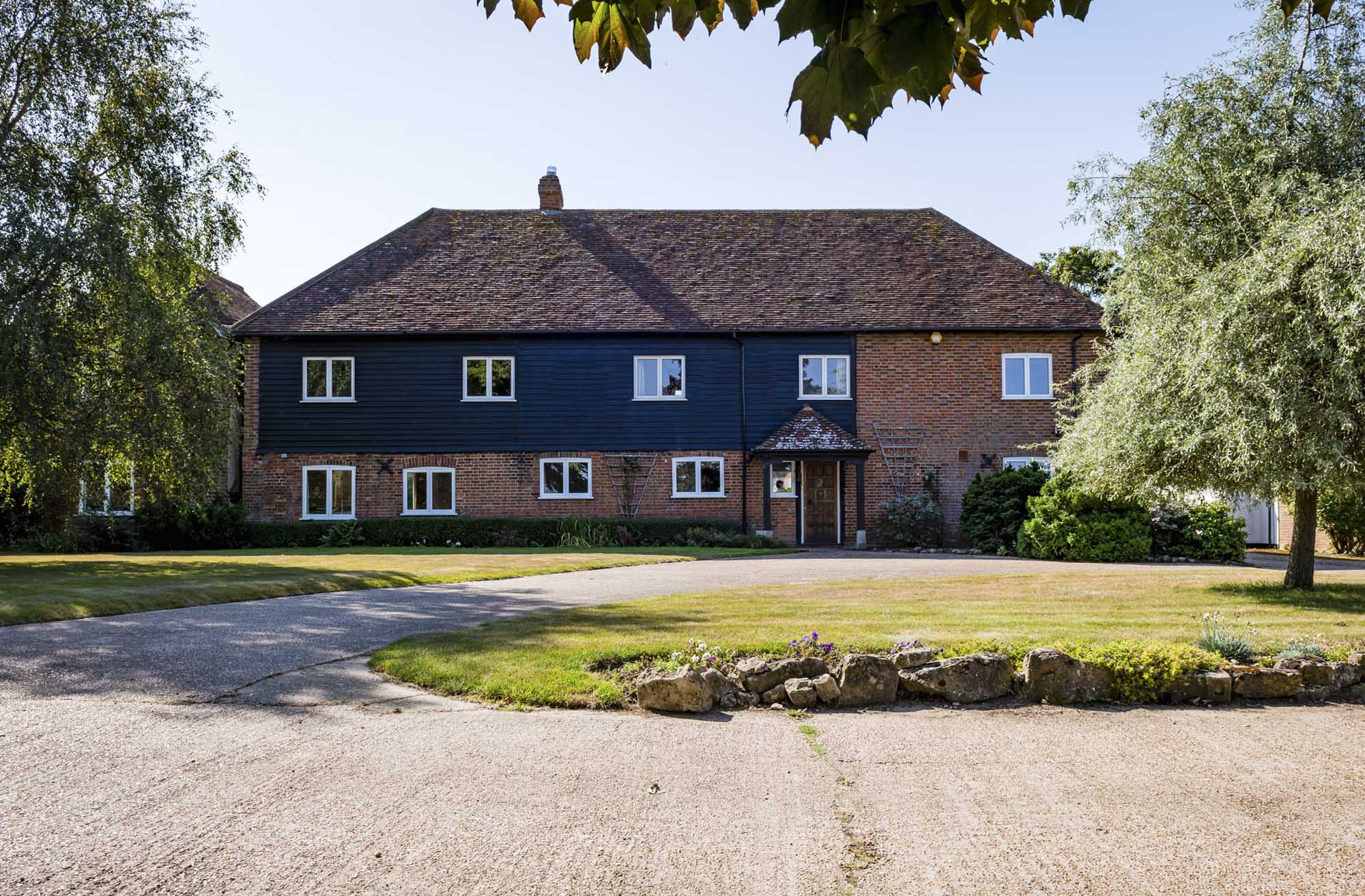 Set within the serene landscape of the Kent countryside, this unique detached home effortlessly blends the charm of its 19th-century origins with modern living. Originally serving as a barn with two characteristic oast roundels, this property was transformed into a residence in 1975, showcasing a tasteful blend of brick and weatherboard.