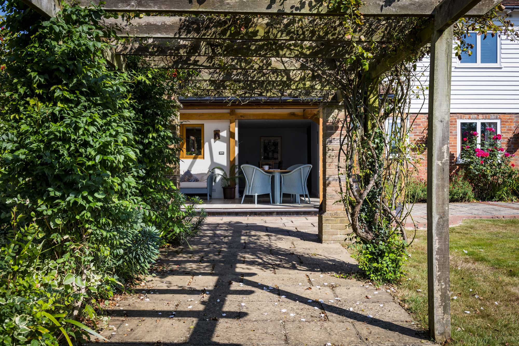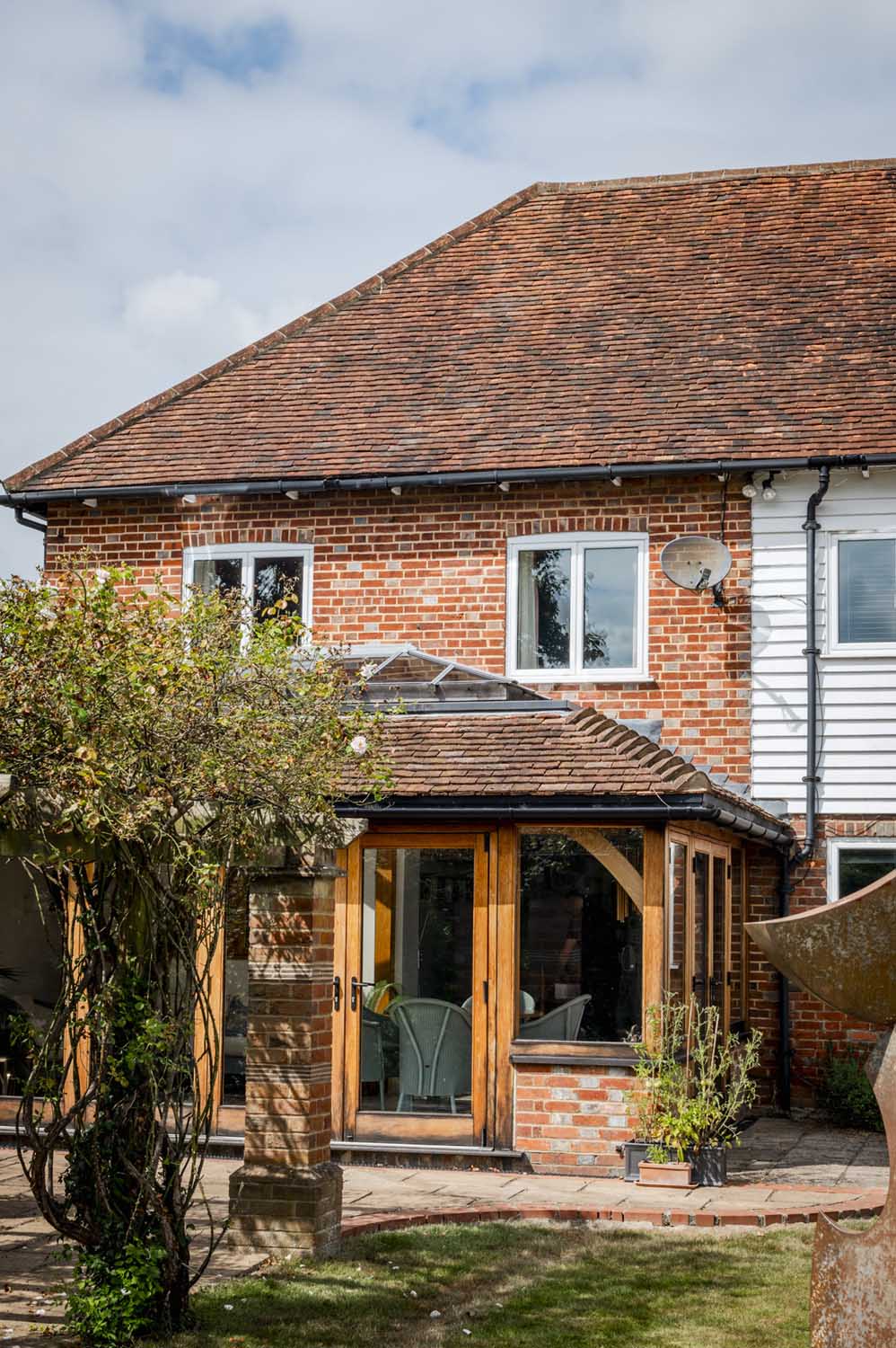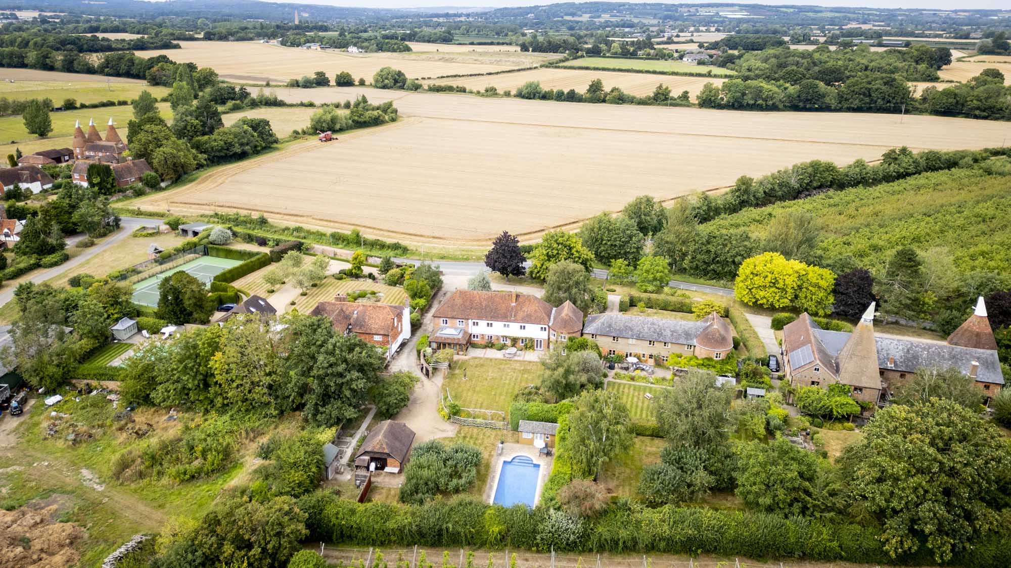Set within the serene landscape of the Kent countryside, this unique detached home effortlessly blends the charm of its 19th-century origins with modern living. Originally serving as a barn with two characteristic oast roundels, this property was transformed into a residence in 1975, showcasing a tasteful blend of brick and weatherboard.