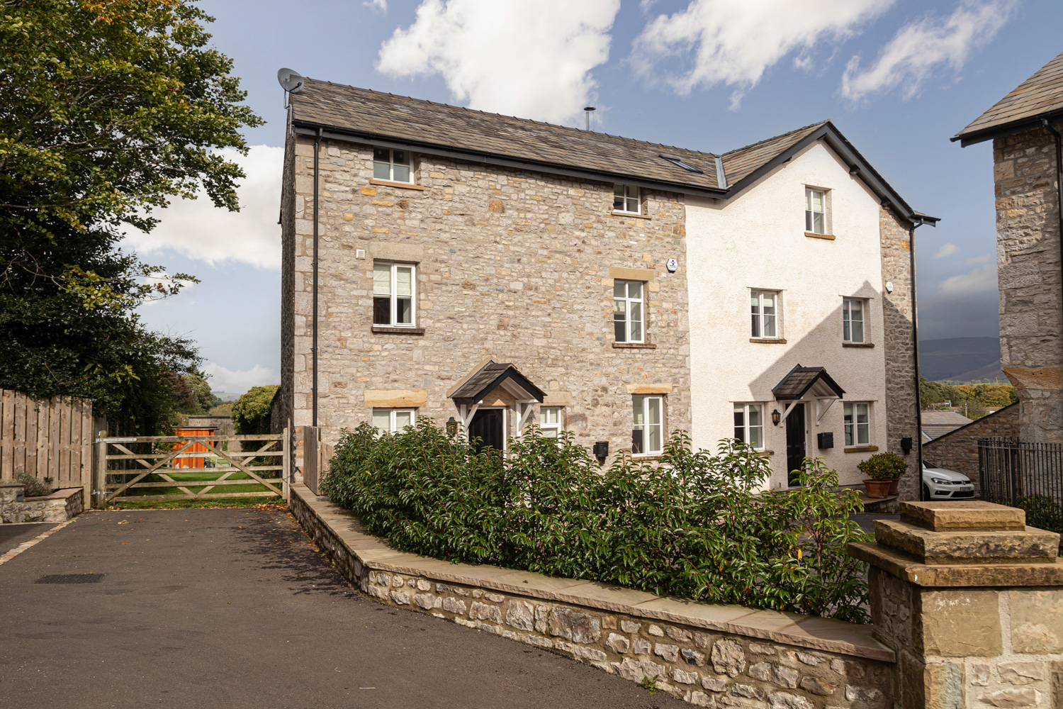 1 Cressbrook Mews is located in a quiet cul-de-sac in the desirable and quaint Cumbrian market town of Kirkby Lonsdale. Built to a high specification in local, natural stone in keeping with the surroundings, the décor and presentation is immaculate and the patio courtyard is an amazing private space for relaxing and entertaining with stunning far-reaching views towards the Yorkshire Dales.