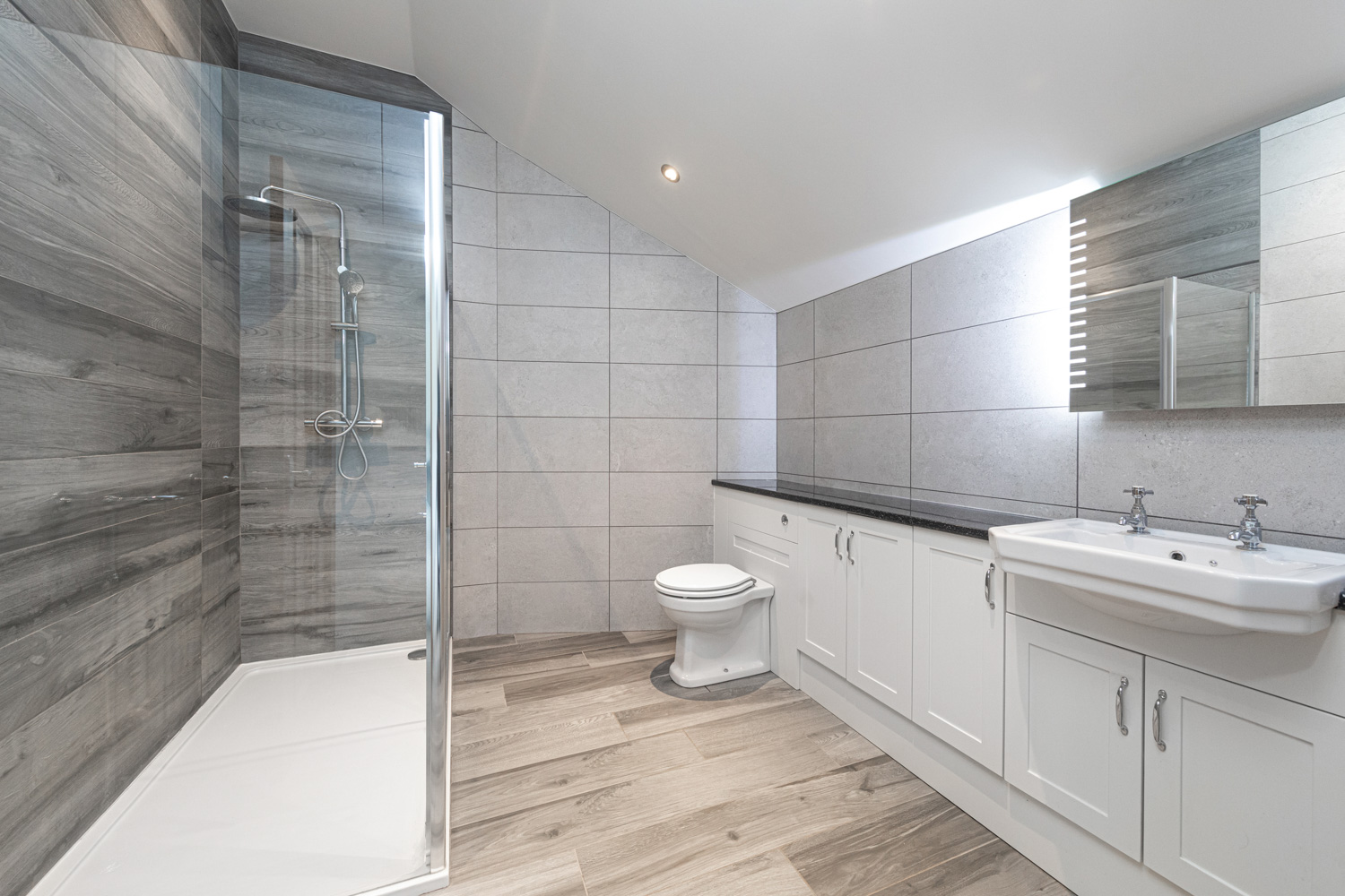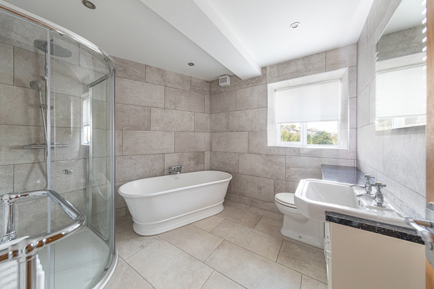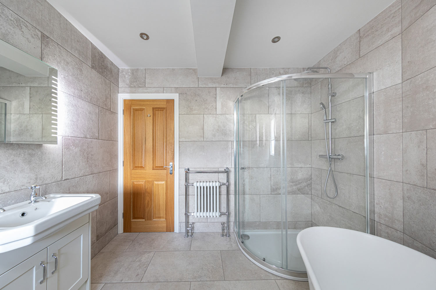 To the first floor are two good sized bedrooms with far-reaching open views over Kirkby Lonsdale and beyond, and a luxuriously appointed family bathroom with modern free standing roll top bath and separate corner shower unit. On the top floor is the principal bedroom, again with stunning views, and a vaulted ceiling. The en-suite shower room is high quality and immaculate.