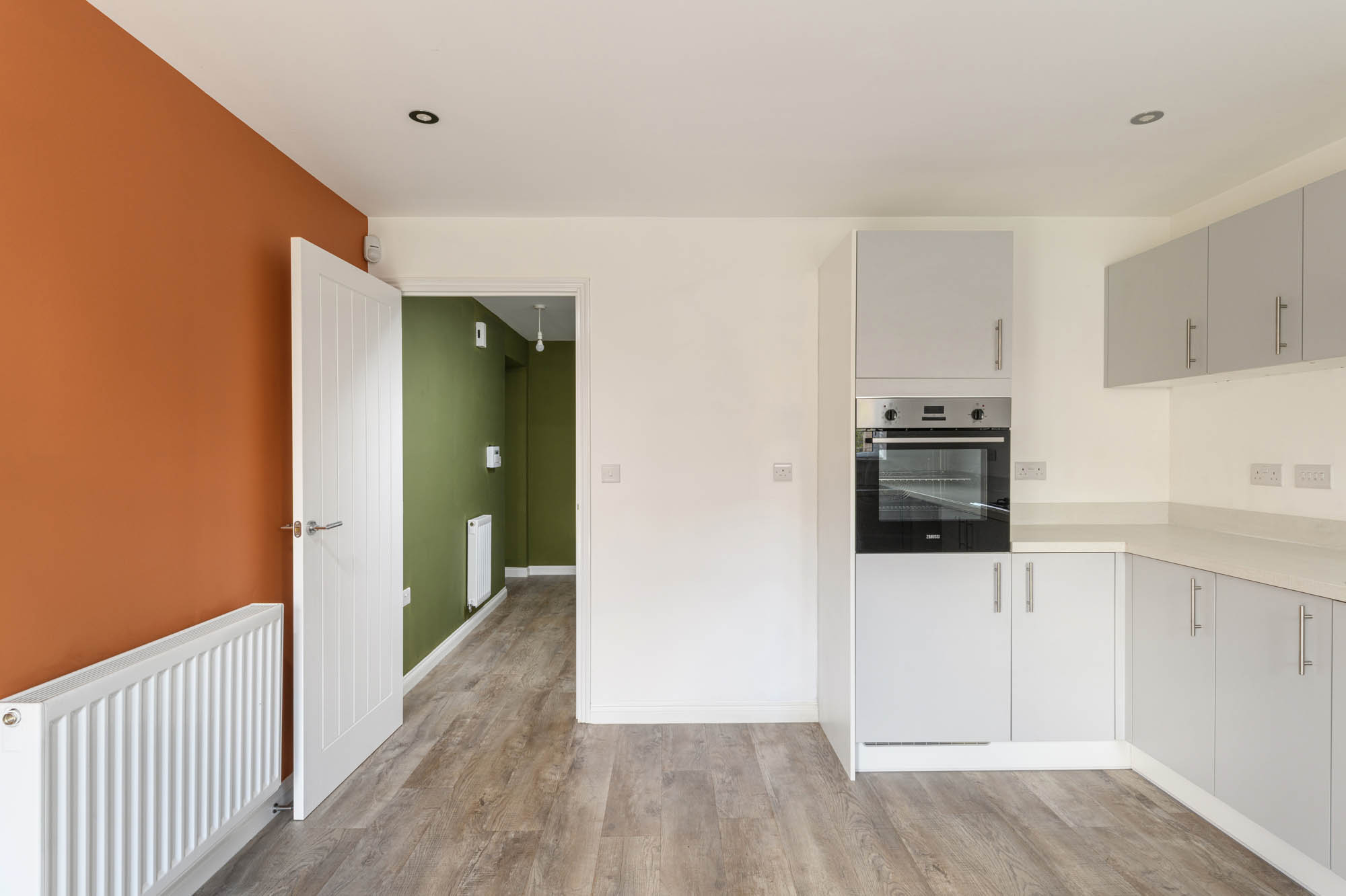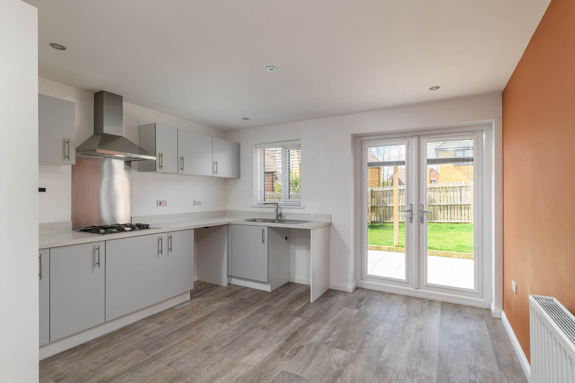 To the rear, the kitchen and dining room is arranged as a single, open space, designed with both practicality and day-to-day living in mind. The layout allows for clear definition between cooking and dining areas, while maintaining a sense of connection throughout. Glazed doors open directly onto the garden, extending the space in the warmer months and allowing for an easy relationship between inside and out. The positioning to the rear also provides a pleasant outlook.
