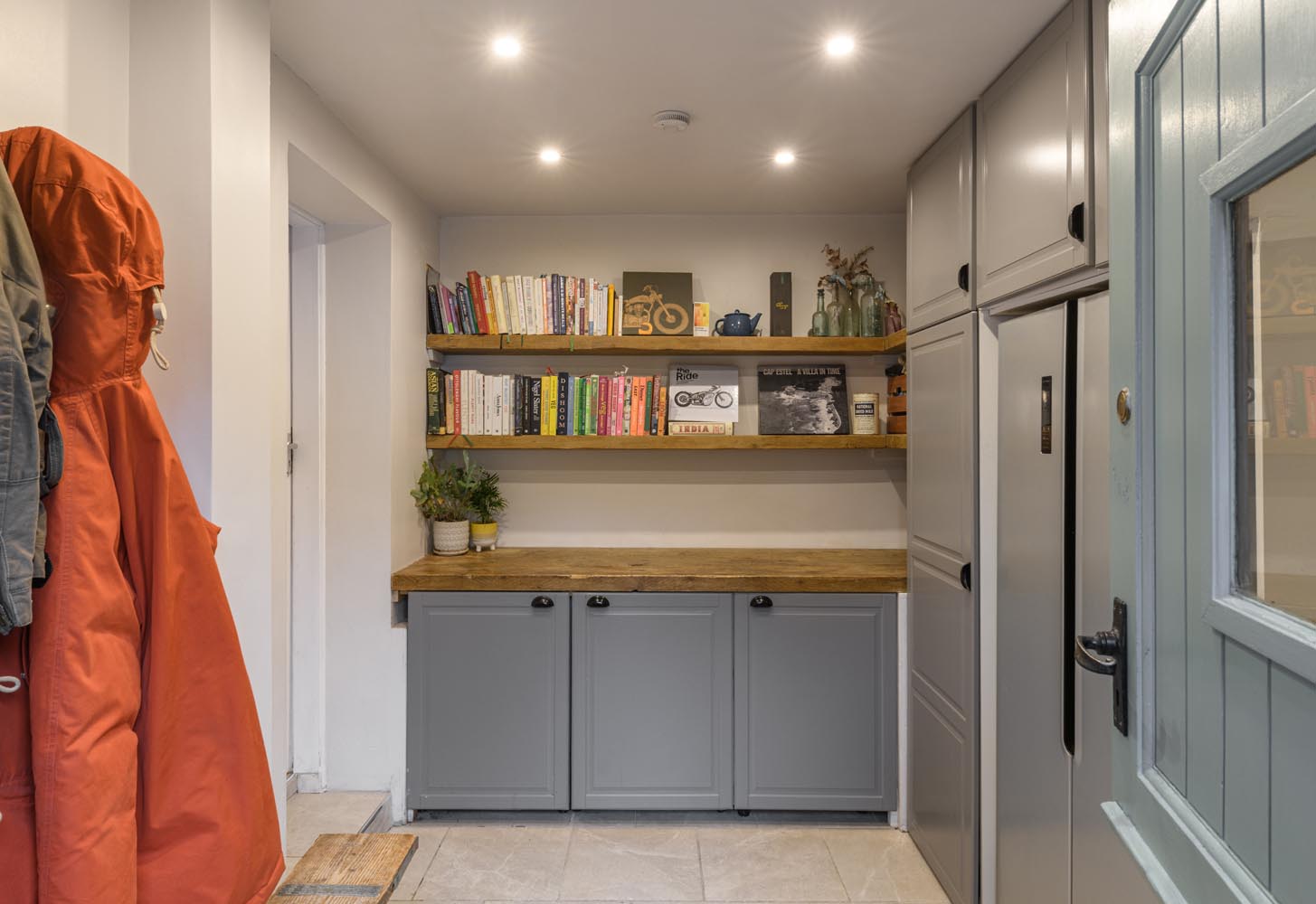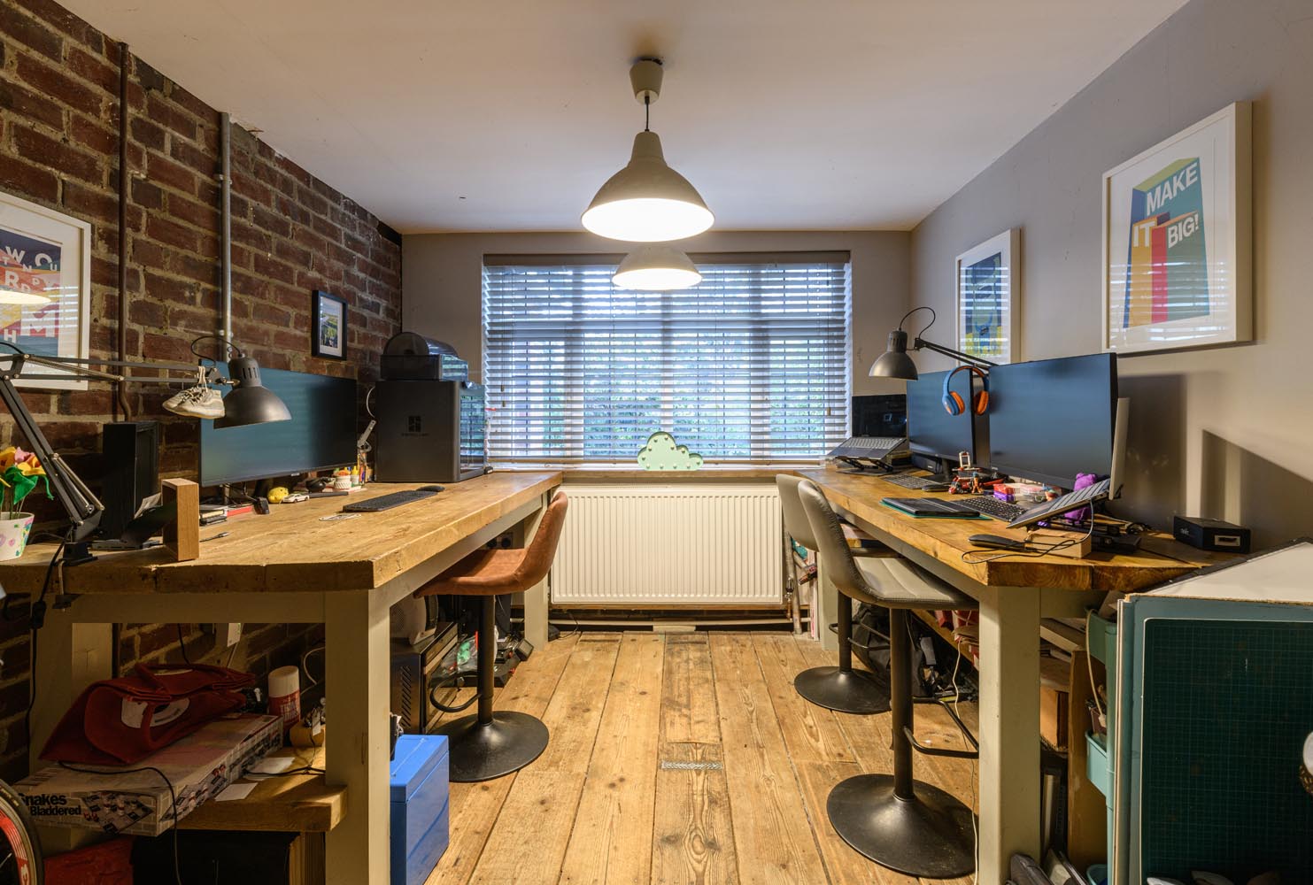 A second reception room, currently arranged as a snug, enjoys a wide window overlooking the garden and the same warm timber flooring, creating a bright and comfortable space that works equally well as a study, playroom or quieter sitting room.