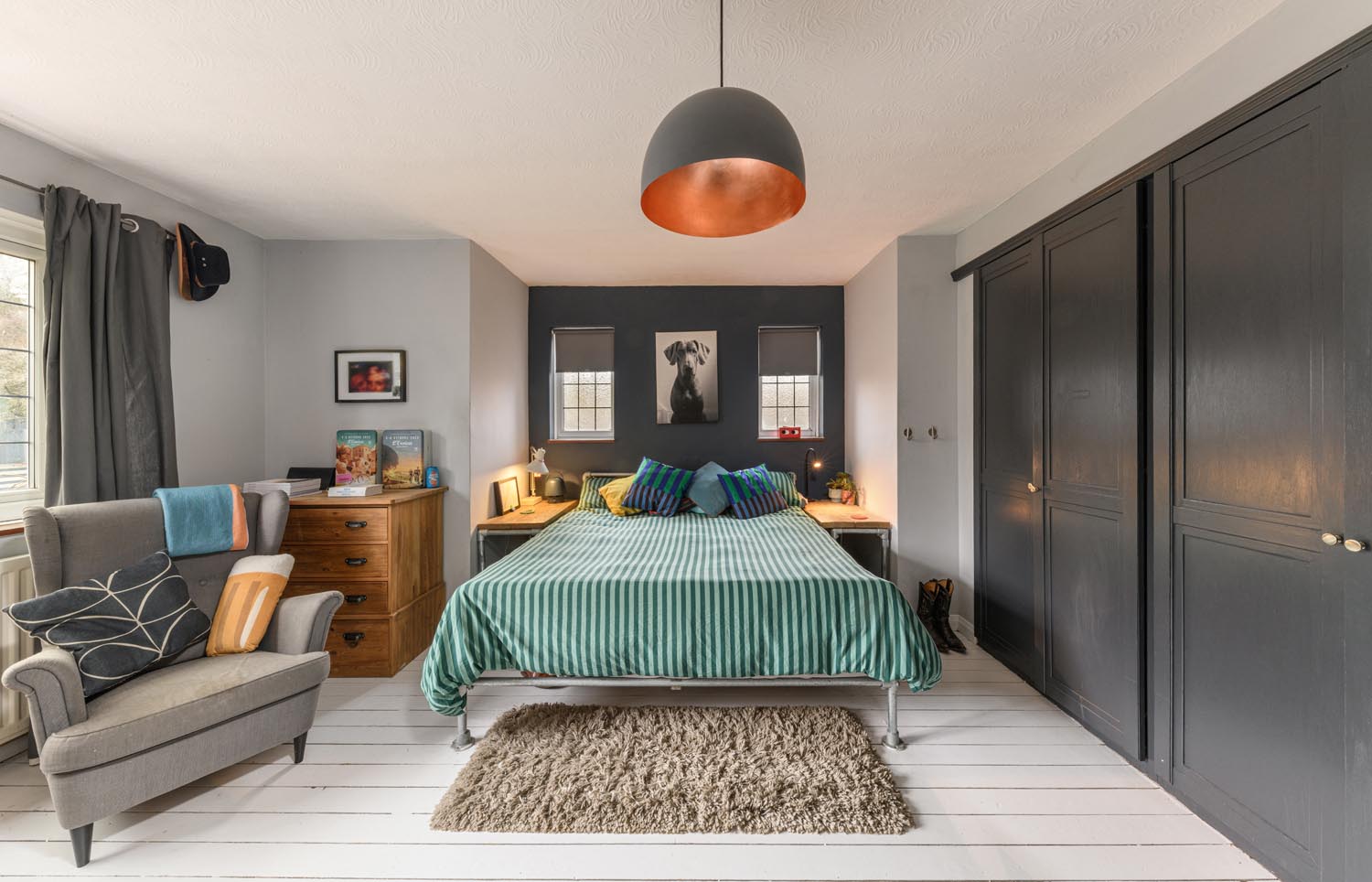 Upstairs, the sense of proportion continues. The principal bedroom is especially spacious and light, enjoying dual aspect windows, room for a seating or dressing area, and an entire wall of fitted wardrobes, creating a calm, well organised retreat. Three further bedrooms provide comfortable and versatile accommodation for family or guests.