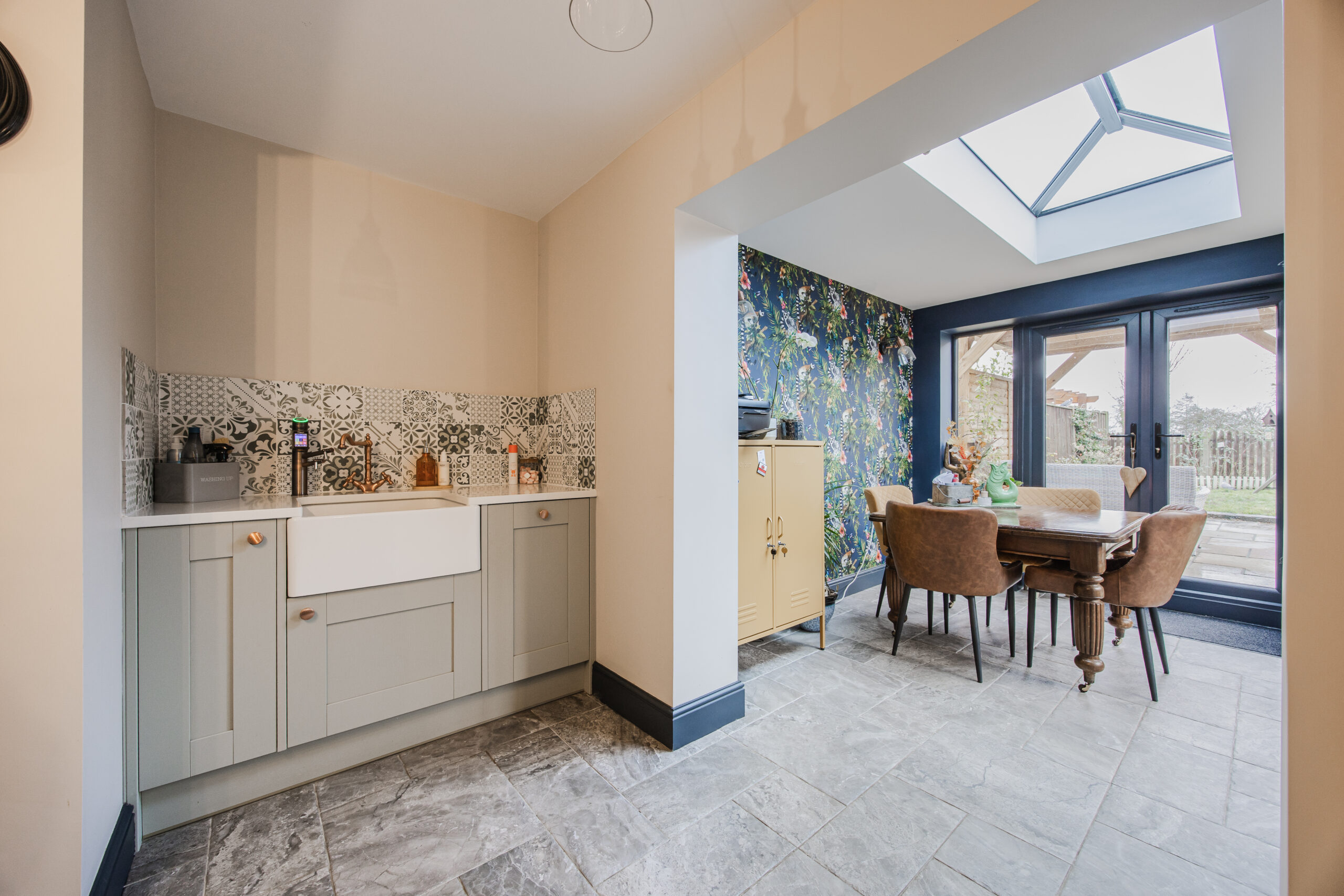 Inside, the accommodation has been arranged with balance and intention. Two generous reception rooms offer flexibility for everyday living, while the extended layout allows the spaces to connect naturally without compromising the integrity of the original cottage. Throughout, the interiors reflect a careful approach to modernisation, blending the property’s period origins with practical, understated finishes.