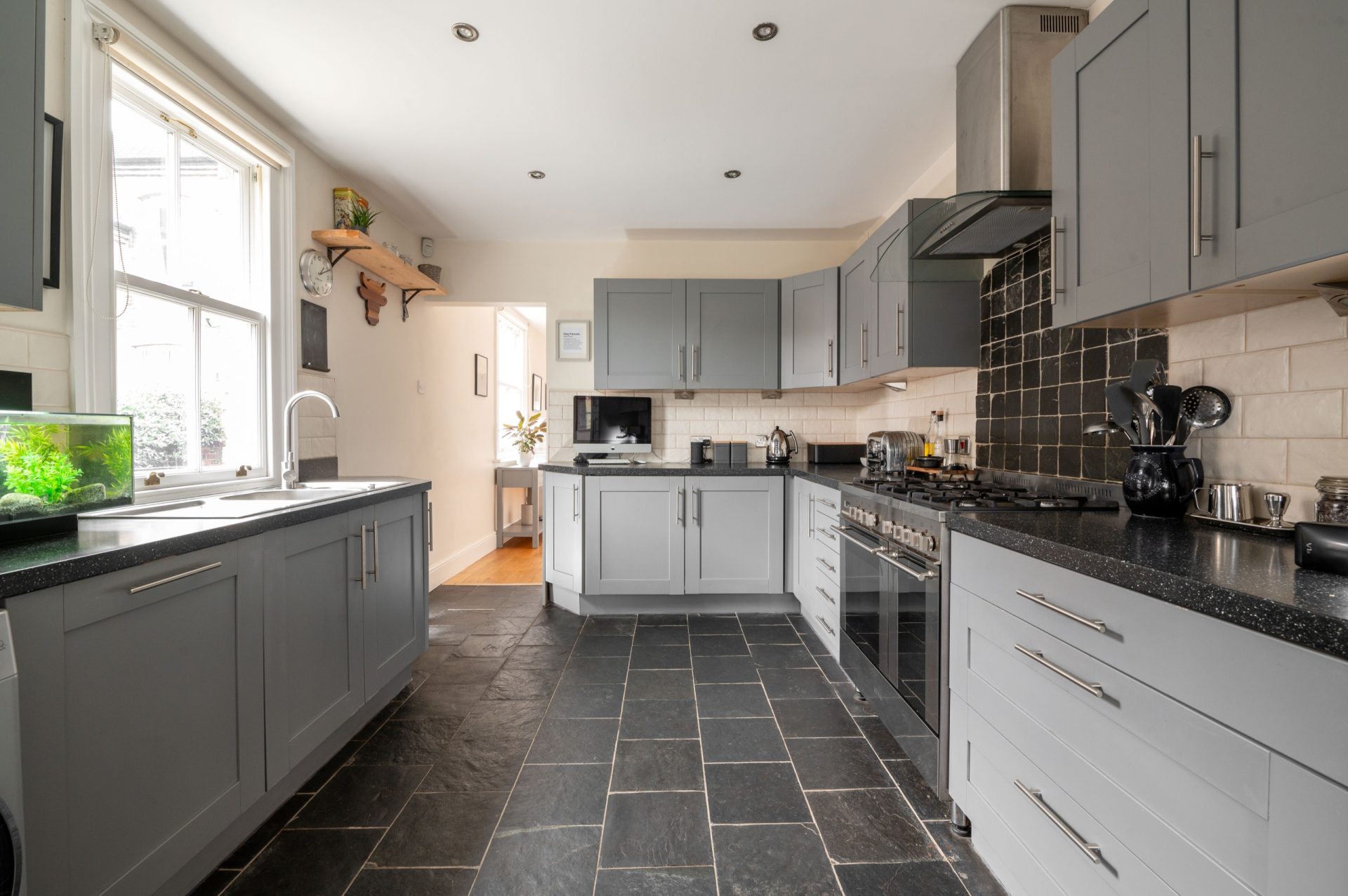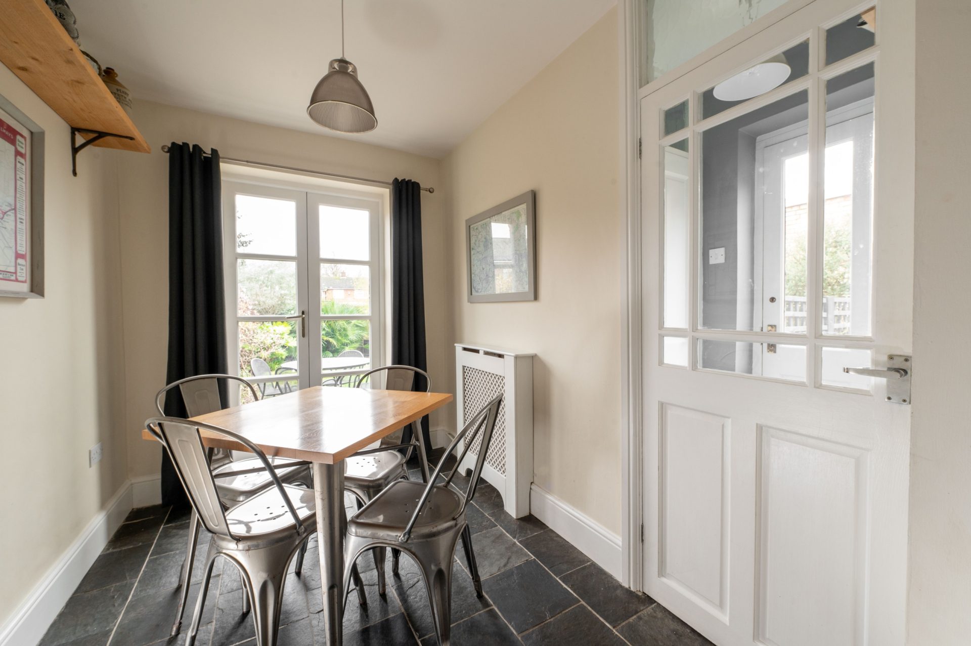 The kitchen benefits from underfloor heating alongside the dining room is located at the rear of the property, it includes French doors opening directly onto the Indian sandstone patio and the private, south-facing walled garden. There is also a downstairs W.C. located at the rear of the downstairs, adjacent to the breakfast area.