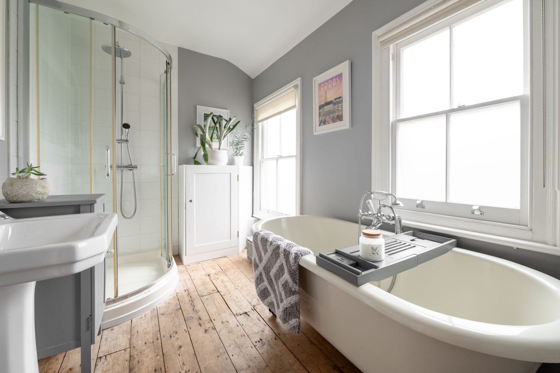Bedrooms Three and Four are double rooms with Bedroom four including a decorative fireplace, both offering views over the rear garden and towards the river. The large family bathroom features a freestanding roll-top bath, a separate shower, and contemporary sanitaryware. In addition, the first floor has a separate W.C. and washbasin to the family bathroom.