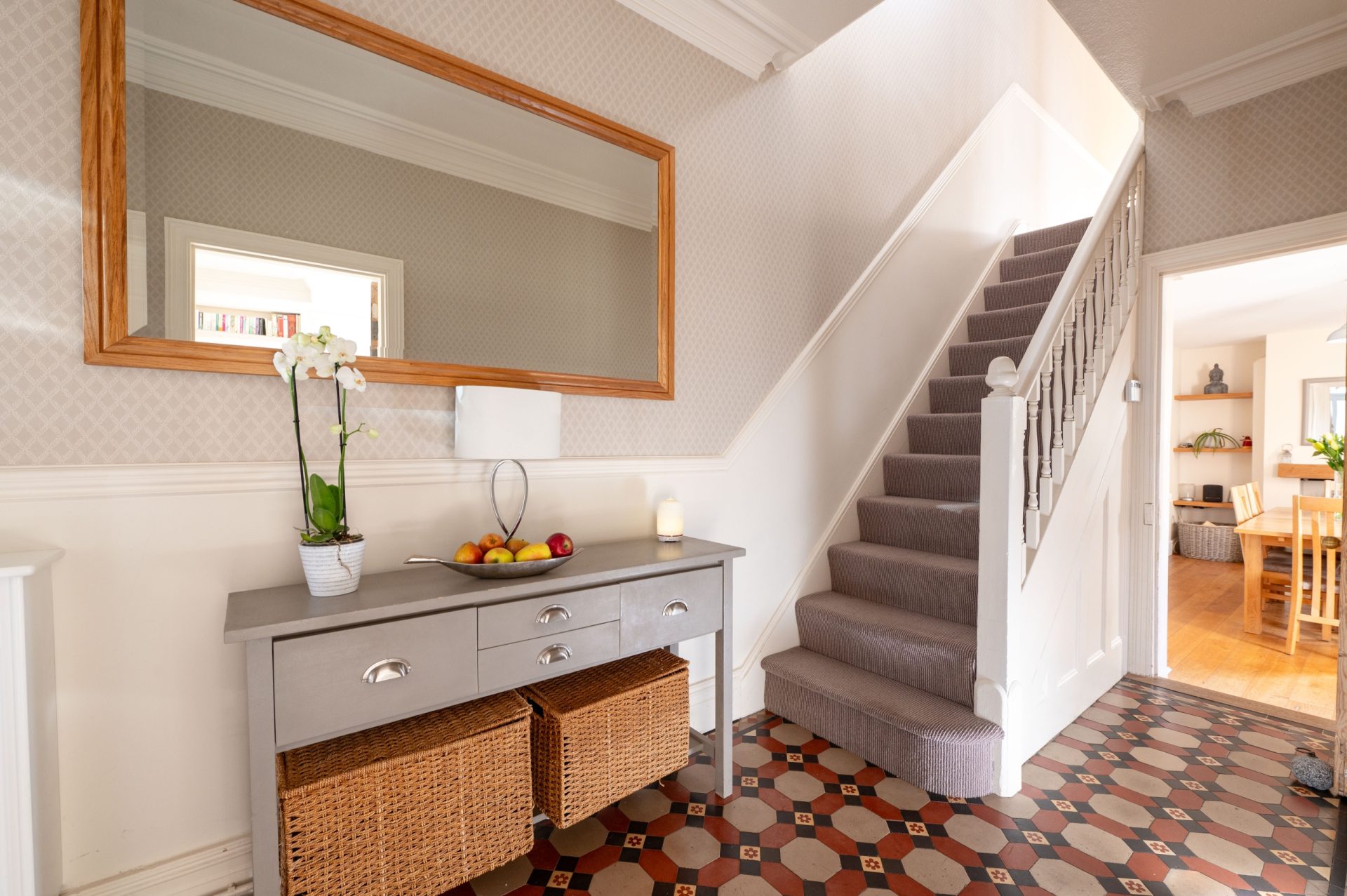 The home retains a variety of original Victorian features, including decorative gables, finials, dado and picture rails, cornicing, ceiling roses, and restored sash windows with slim-profile double glazing. The entrance hall features a beautifully restored original floor, setting the tone for the property’s well-maintained character.