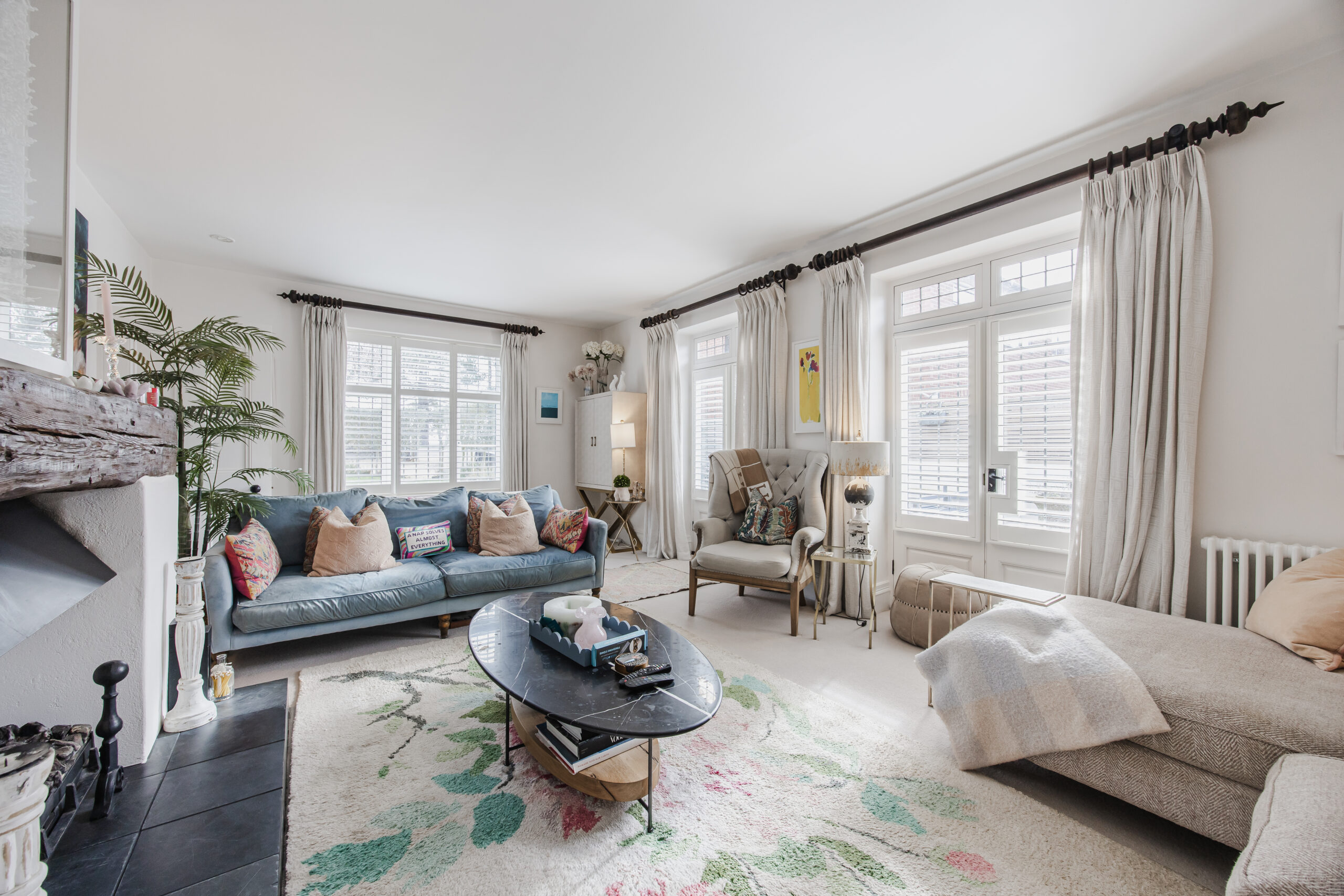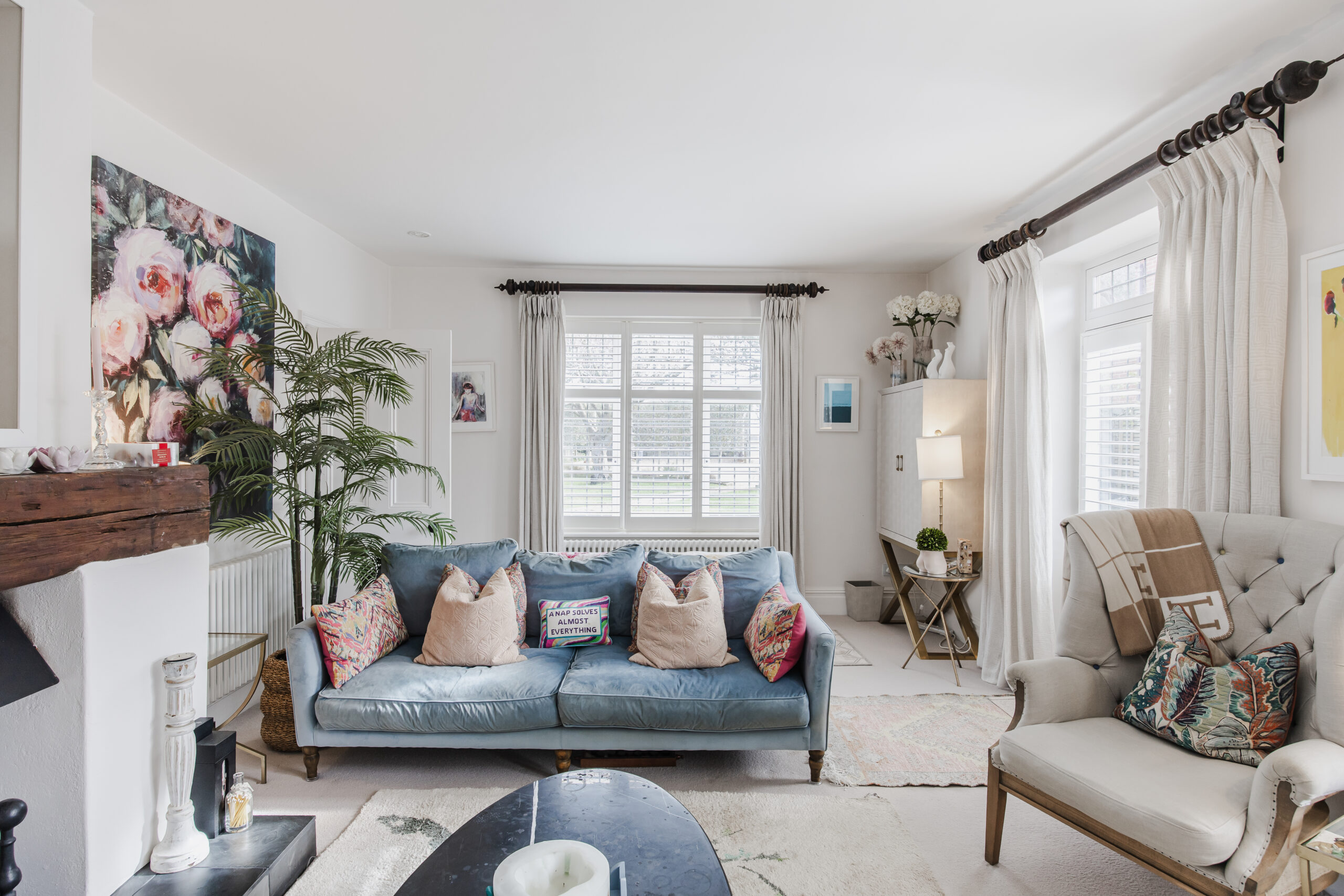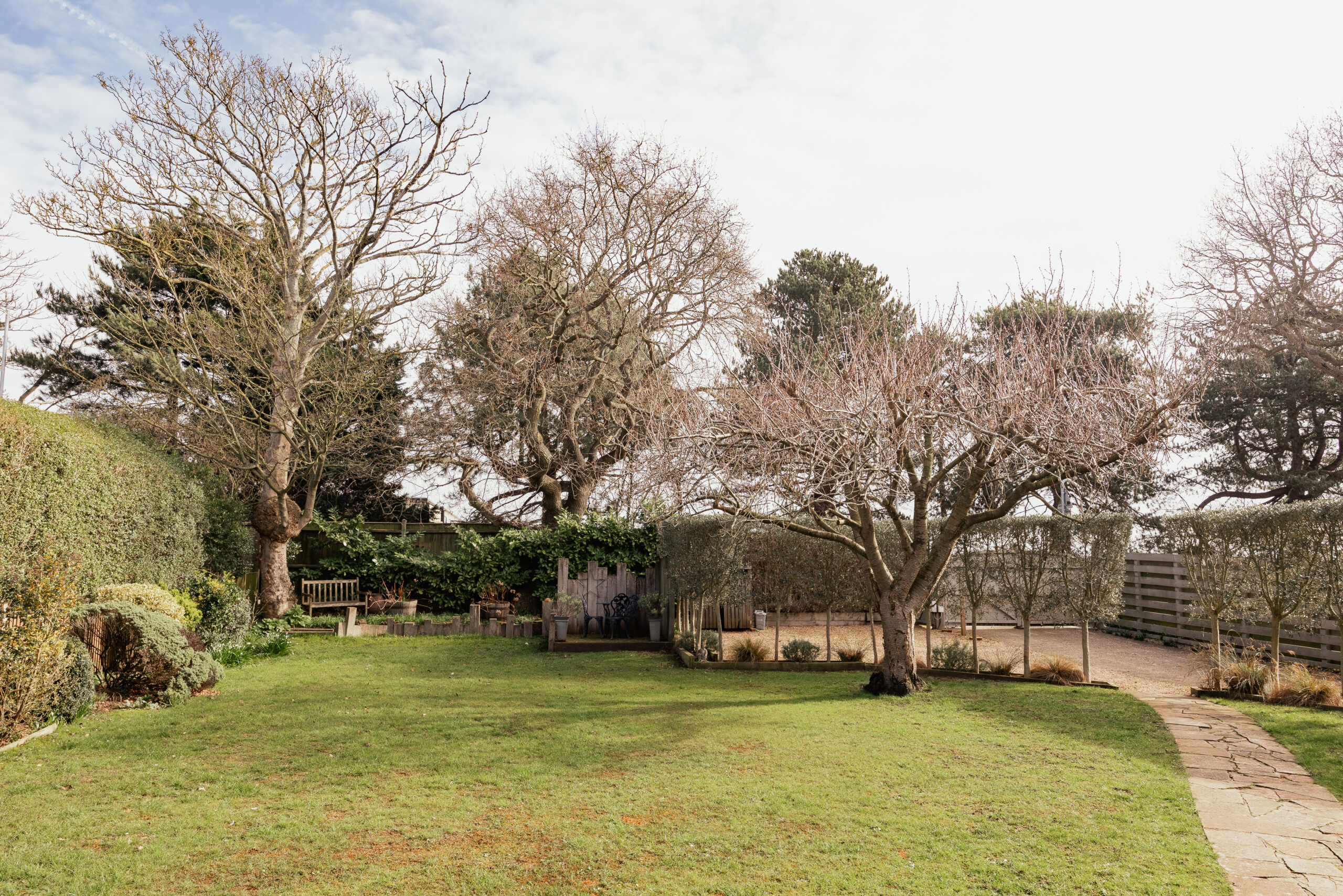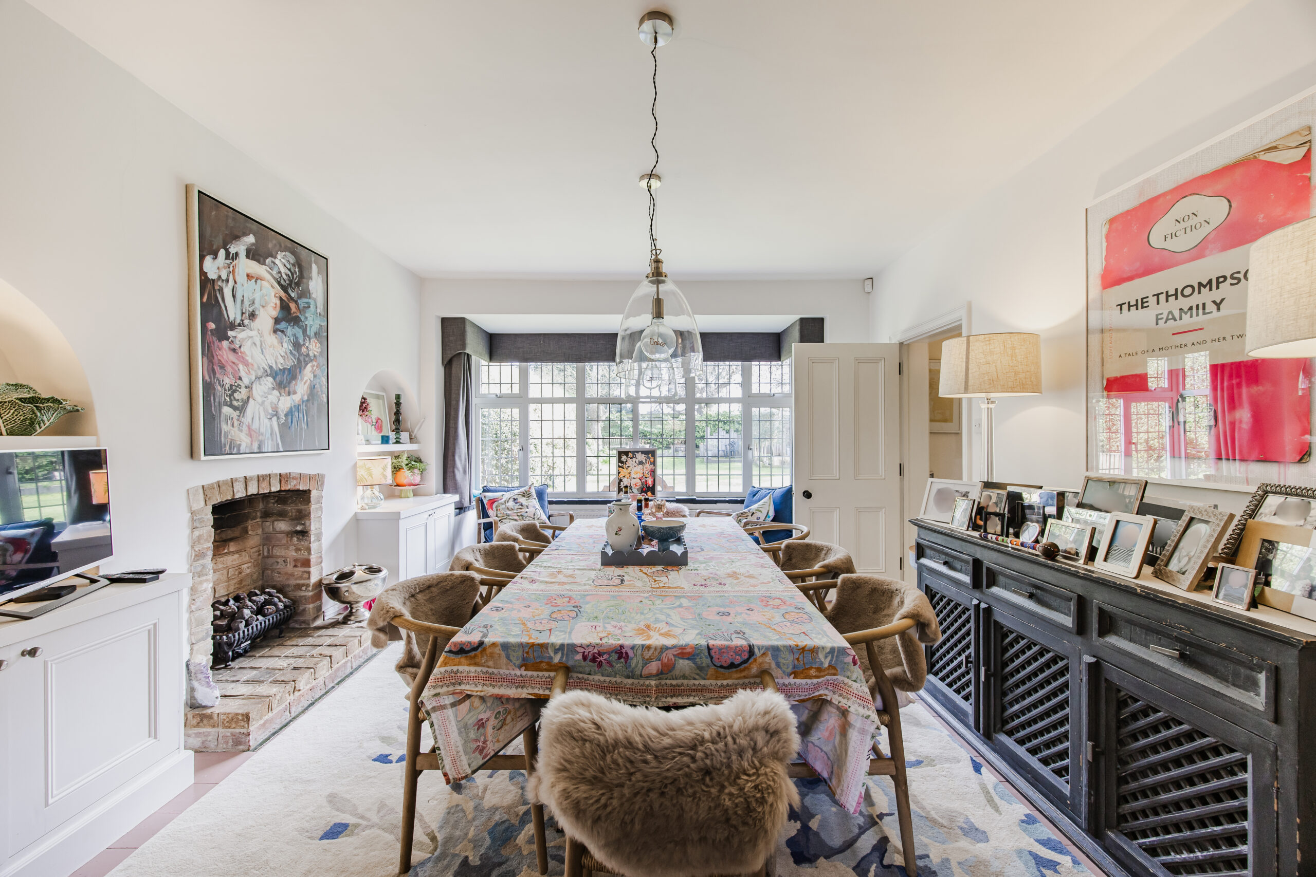 To one side, the handmade kitchen/dining room forms the natural hub of the house. Centred around an island, it is a space designed for everyday living as much as entertaining – somewhere to gather over coffee in the morning, host dinner with friends or keep an eye on homework at the table. Across the hall, the full-depth sitting room offers a more relaxed retreat, complete with a feature fireplace and views out to the garden, making it equally suited to cosy evenings or larger gatherings.