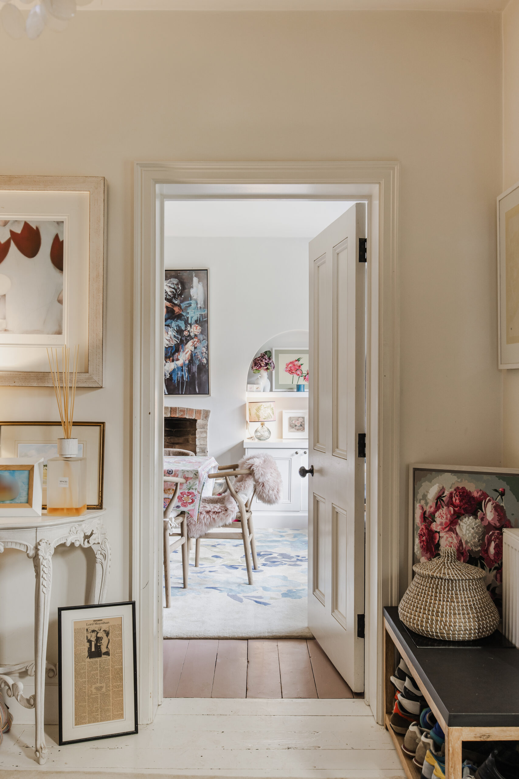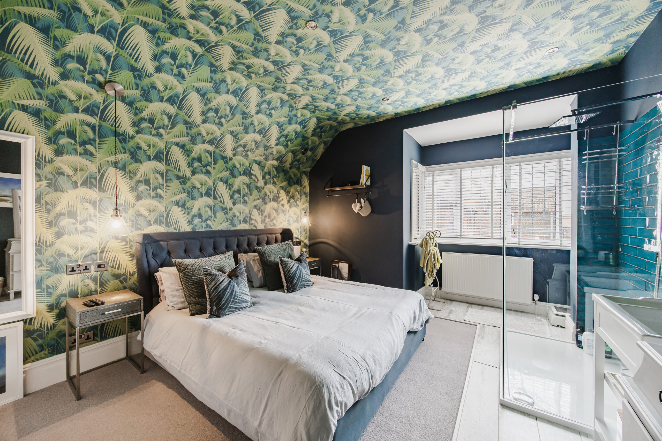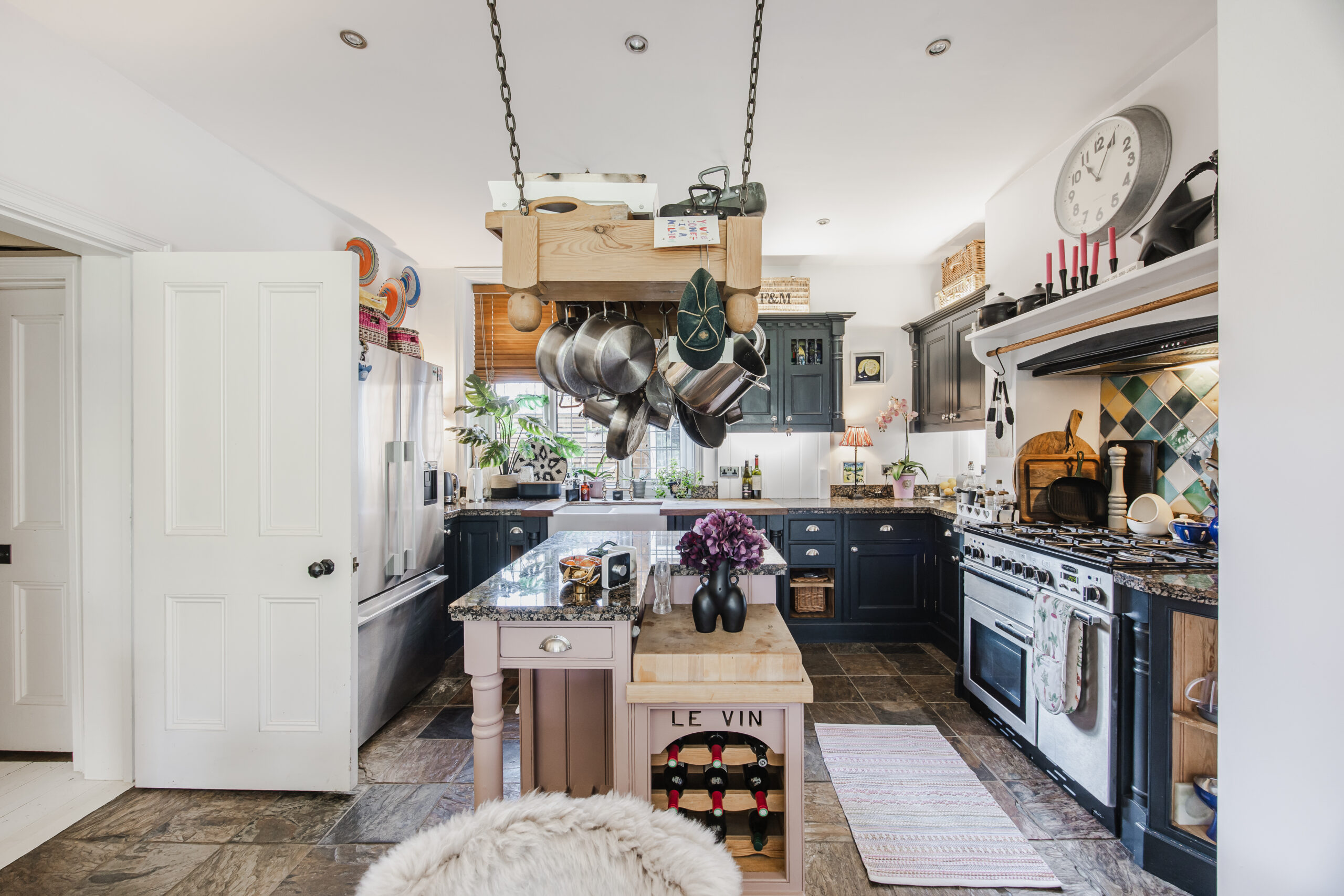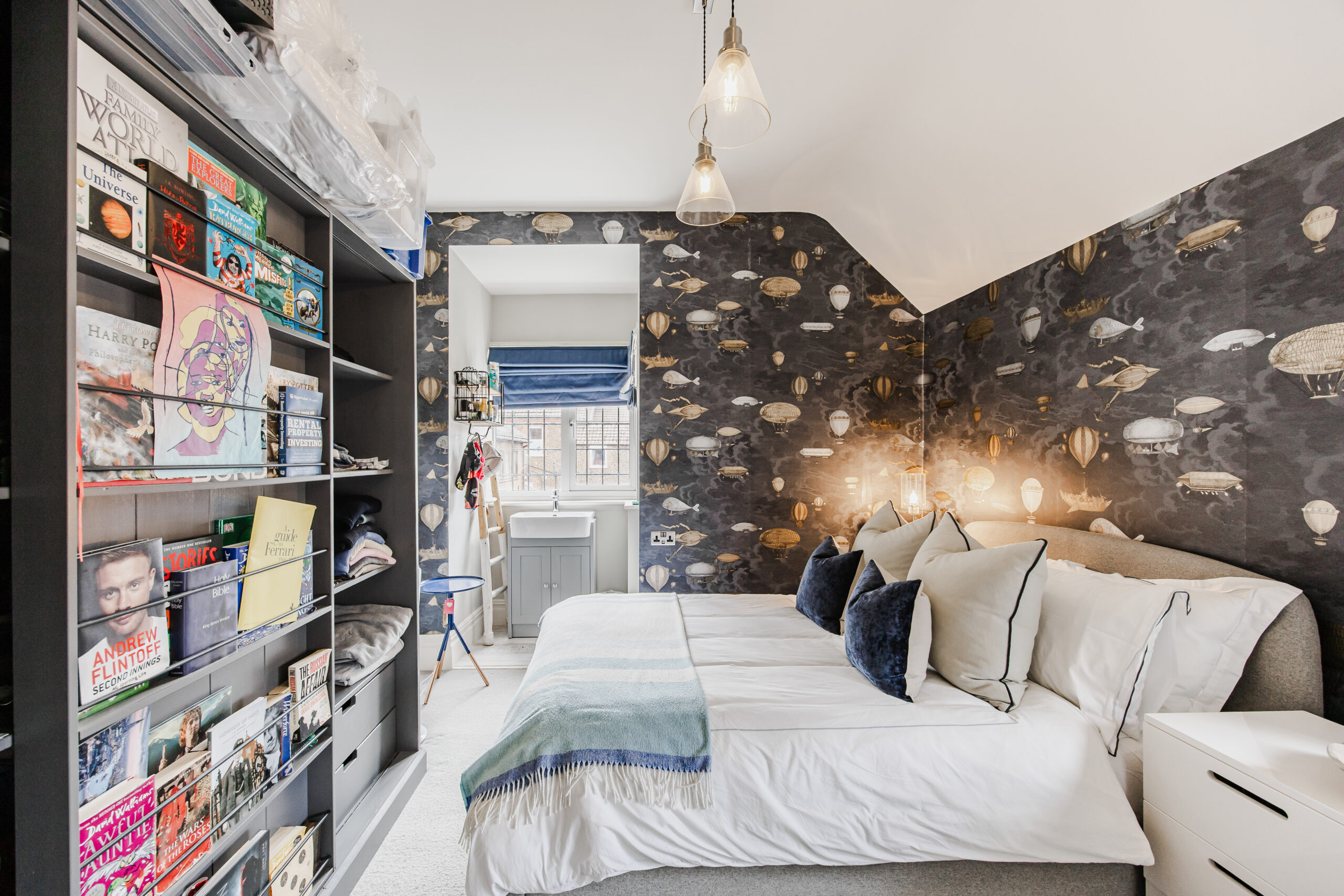 To one side, the handmade kitchen/dining room forms the natural hub of the house. Centred around an island, it is a space designed for everyday living as much as entertaining – somewhere to gather over coffee in the morning, host dinner with friends or keep an eye on homework at the table. Across the hall, the full-depth sitting room offers a more relaxed retreat, complete with a feature fireplace and views out to the garden, making it equally suited to cosy evenings or larger gatherings.