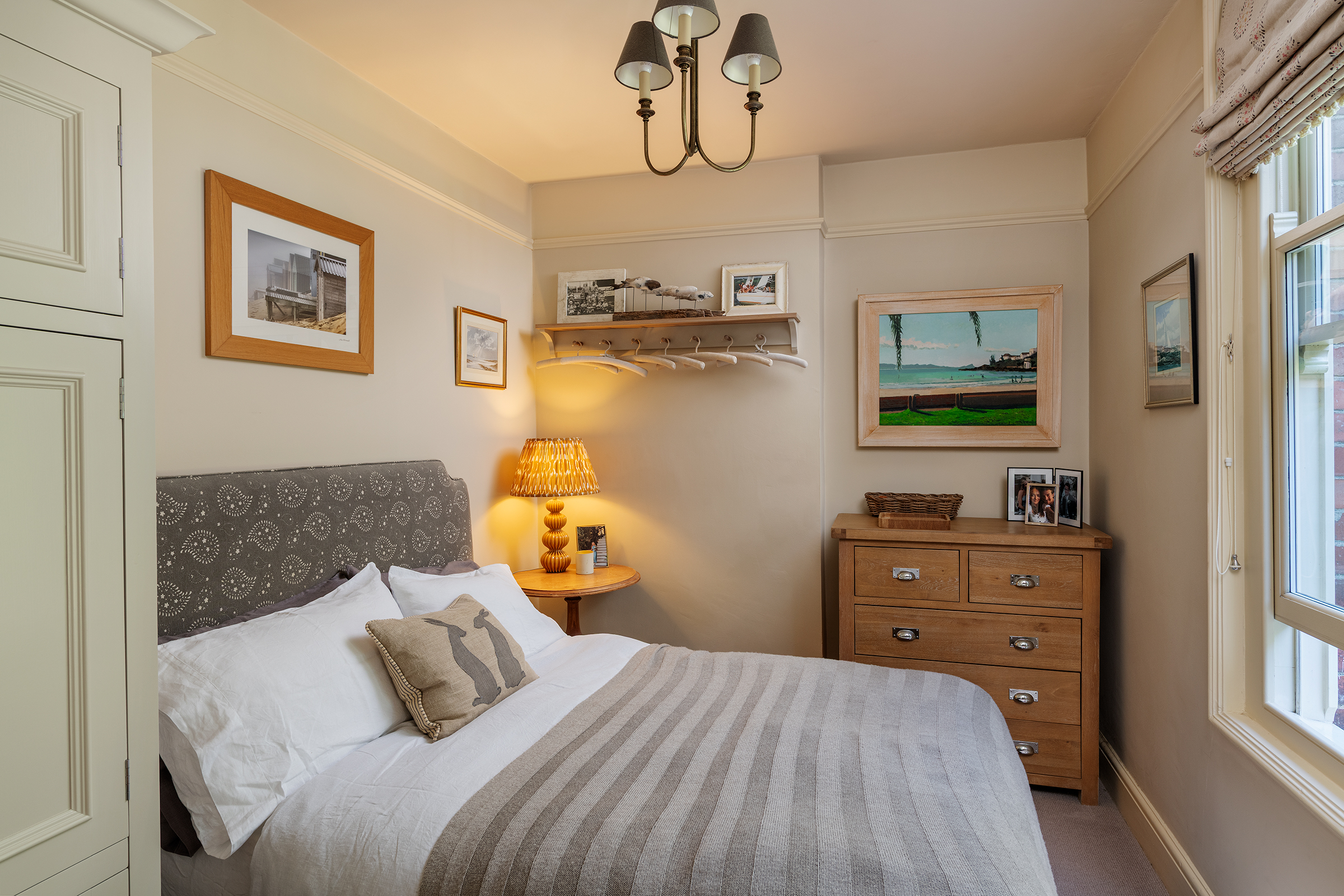 Upstairs, three double Bedrooms continue the theme of light and space. The two Bedrooms at the front of the house benefit from even more spectacular views thanks to their elevated position, as well as generous built-in storage. Soft, muted tones enhance the calming atmosphere throughout. The Principal Suite is refined and tranquil, complete with a generous En-Suite Shower Room where natural stone and warm brass fittings add a quiet sophistication. The Family Bathroom is spacious and stylish, featuring a double-ended bath and a separate large shower, perfect for relaxing after a day on the river.