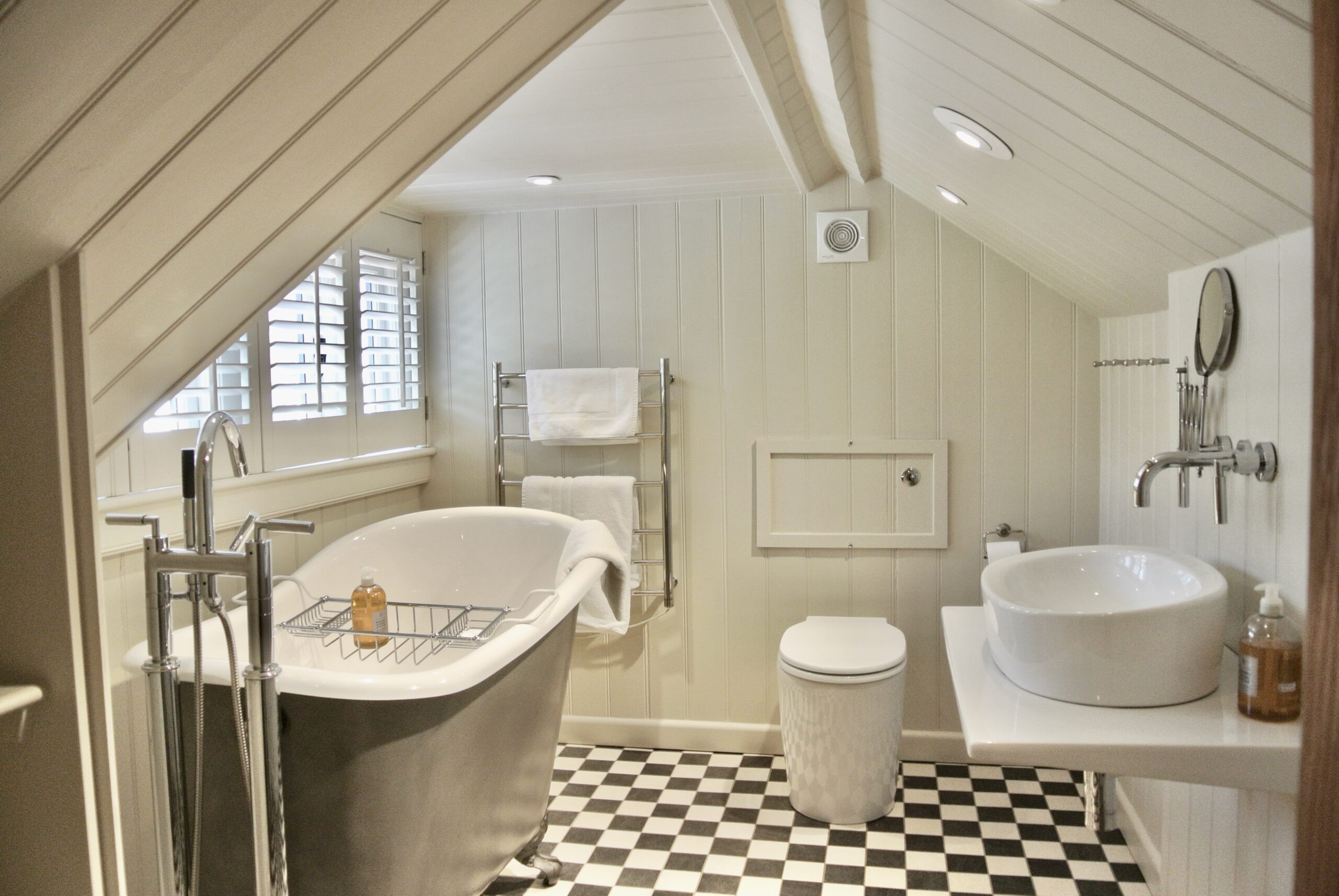 Take the charming staircase to discover the first of the two double Bedrooms. Coastal cottage charm abounds in this delightful room from the casement windows that frame the views out over the Quayside and the River Dart. The colours in the room reflect the waterside theme. Head up the stairs to refresh and revive in the En-suite Bathroom with a feature freestanding tub. Take a peak into the second Bedroom with a vaulted ceiling and a cute circular window providing a glimpse of the rear Garden. Next door discover a sumptuous Shower Room. Neat and modern, it also provides En-suite facilities for this Bedroom.
