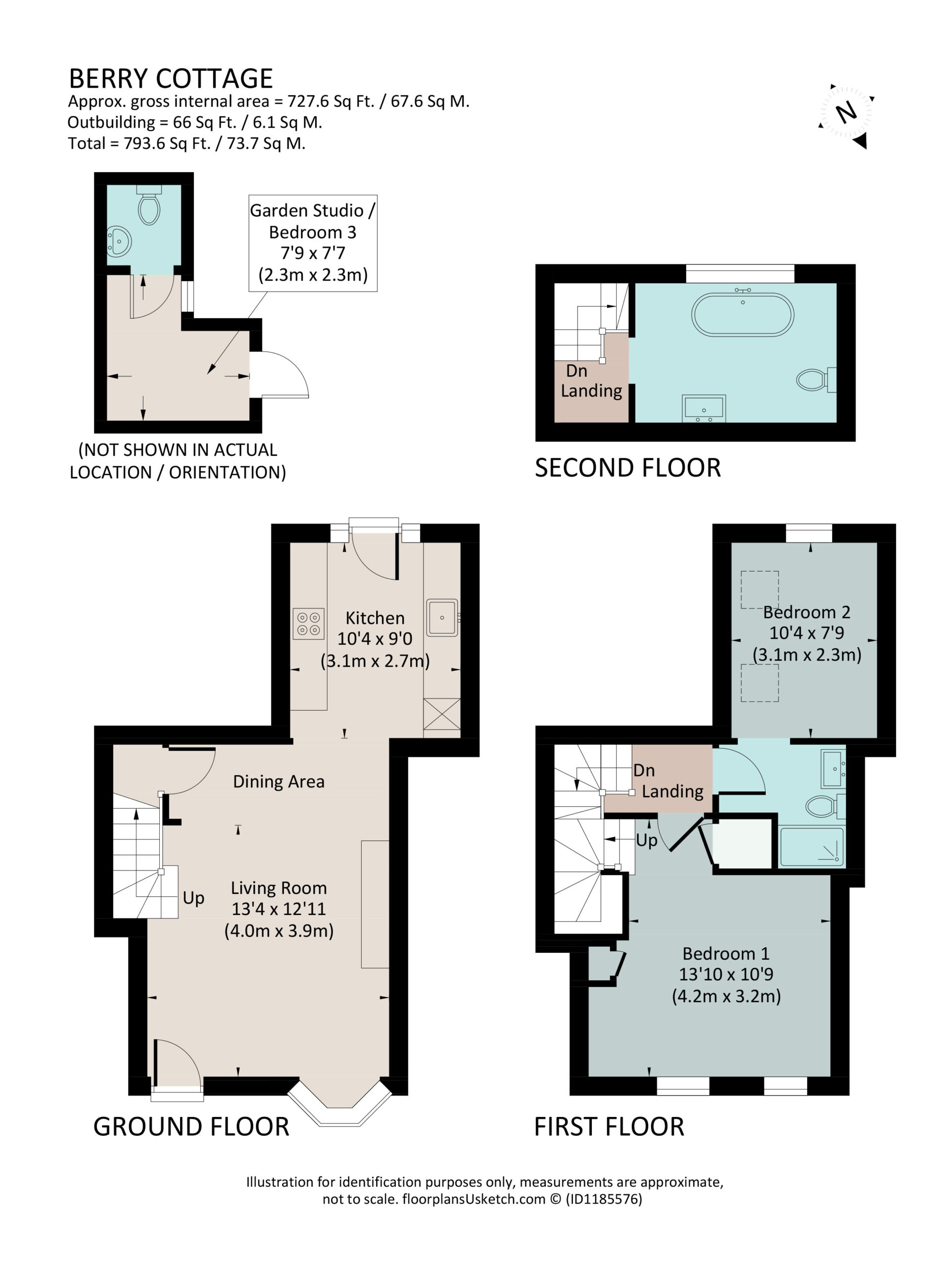 Time to head out to the Garden approached off the Kitchen up stone steps. A whitewashed wooden Studio provides a super third Bedroom for children to camp out on the built-in bunks with the added bonus of a WC or would make the perfect home office. A further set of stone steps offer access to the spacious wooden decking with bags of space for outdoor furniture, plus the added bonus of panoramic river views.
