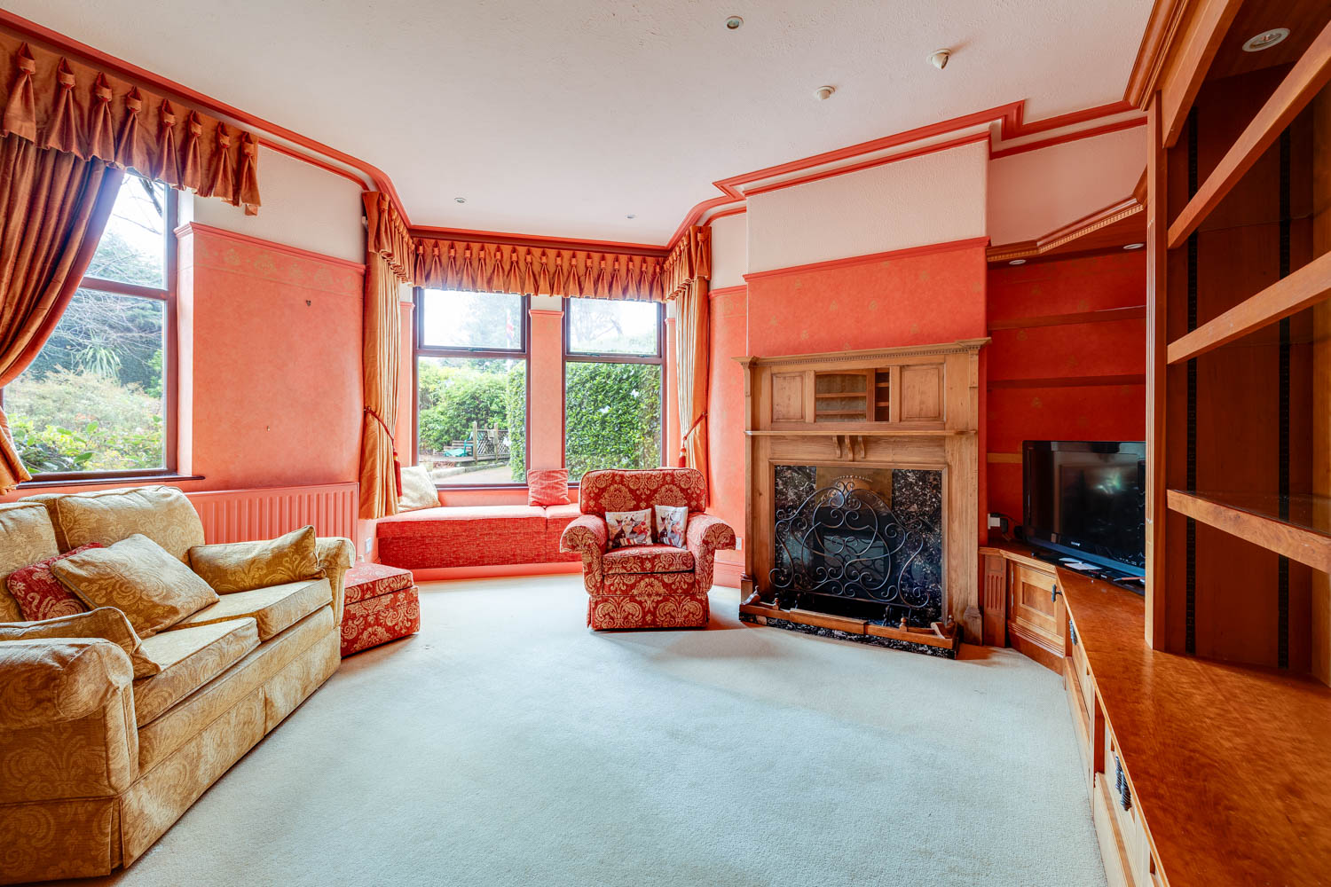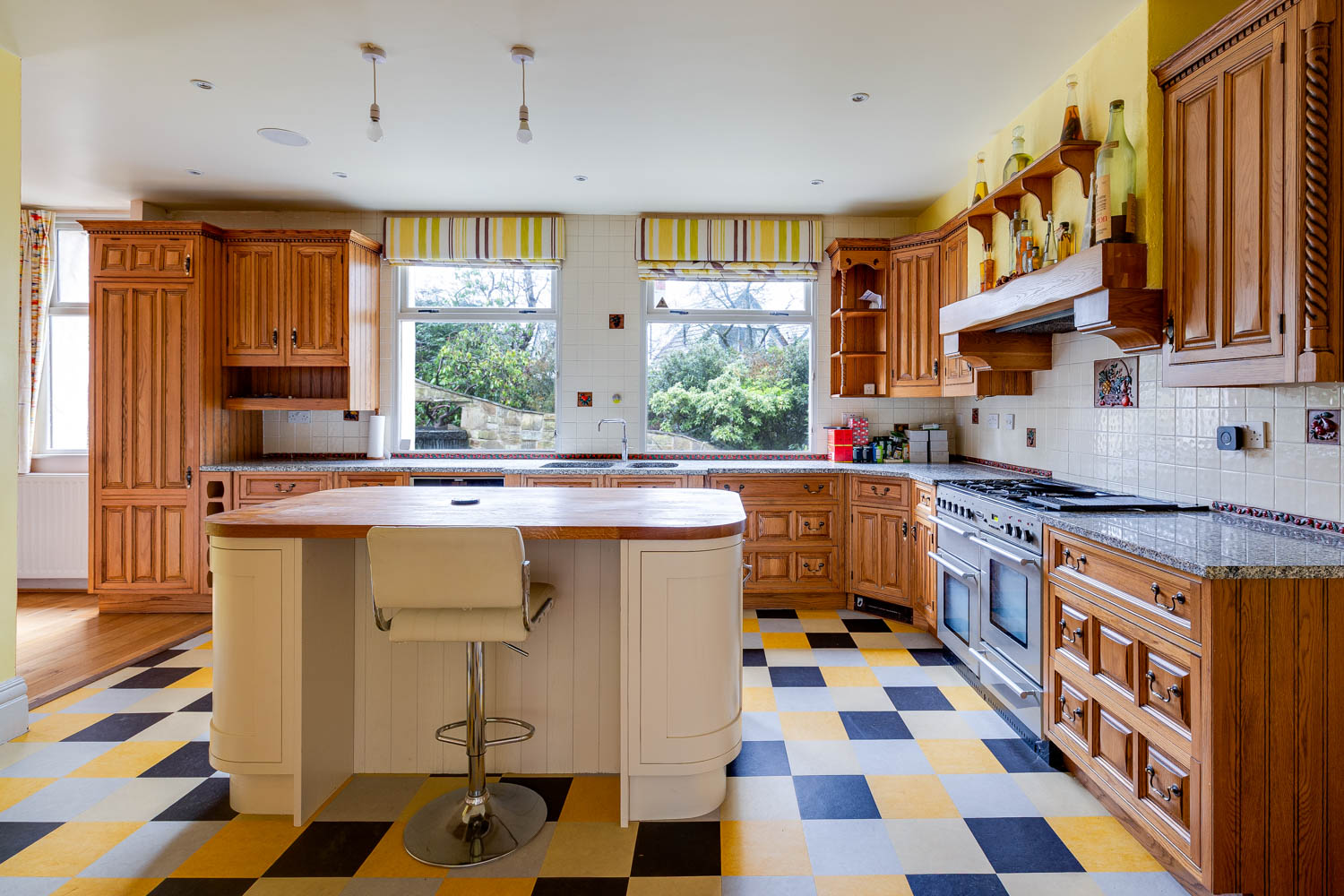 Four reception rooms provide flexibility and character. The principal rooms offer refined spaces for formal gatherings, while the sun room invites softer moments, bathed in natural light and overlooking the gardens. A well appointed kitchen forms the social heart of the home, opening into a comfortable lounge area with calming views across the grounds. It is a space that naturally draws people together, equally suited to busy mornings or long, unhurried evenings.