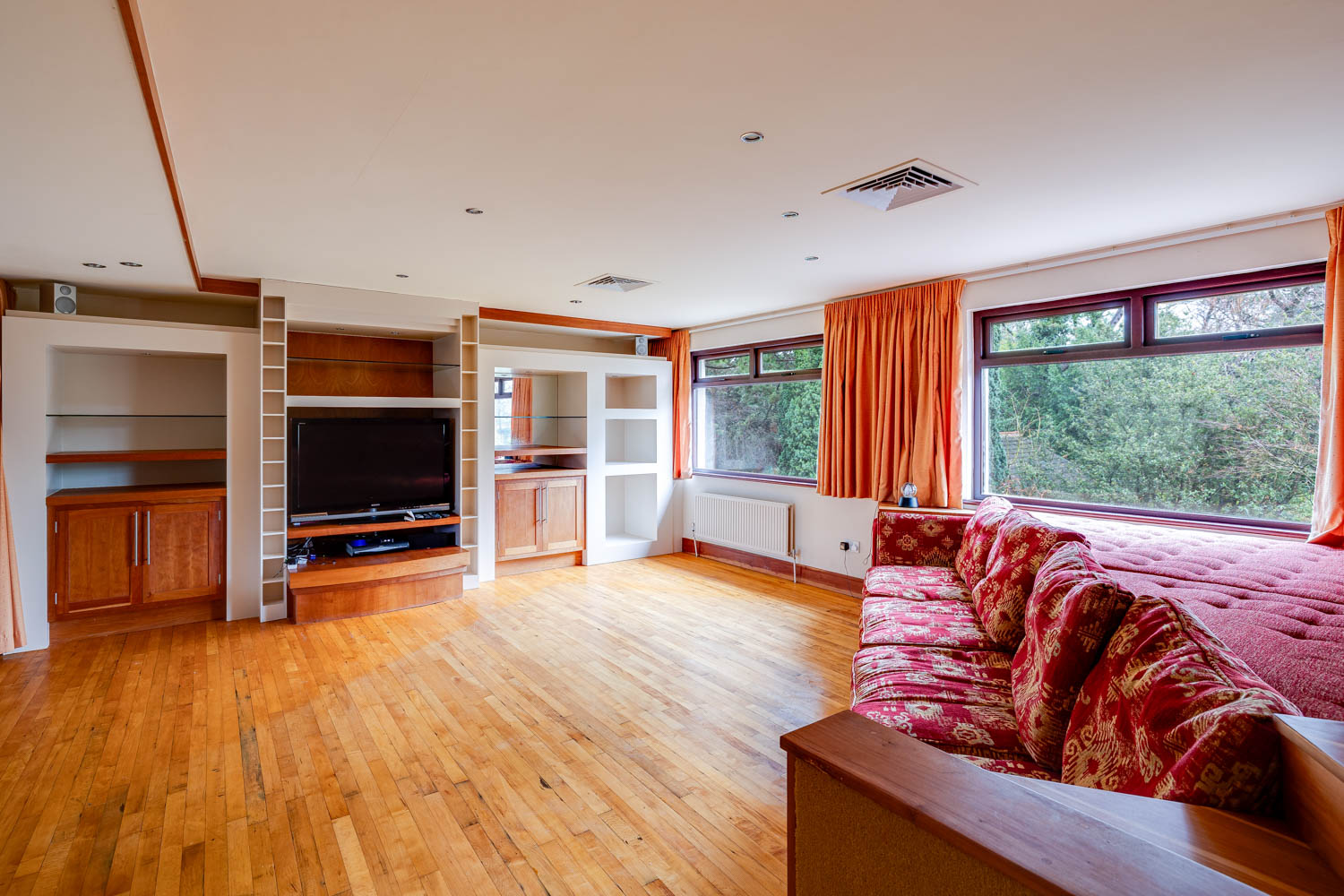 Bedroom accommodation is arranged over two upper levels, offering versatility for growing families or multi generational living. Four bedrooms are positioned on the first floor, each well proportioned and filled with natural light. The principal bedroom enjoys the luxury of a walk in wardrobe and a private en-suite bathroom which is also used as a Jack and Jill bathroom. A family bathroom serves the remaining rooms on this level, and a large terrace extends from the landing, providing an elevated vantage point over the gardens.