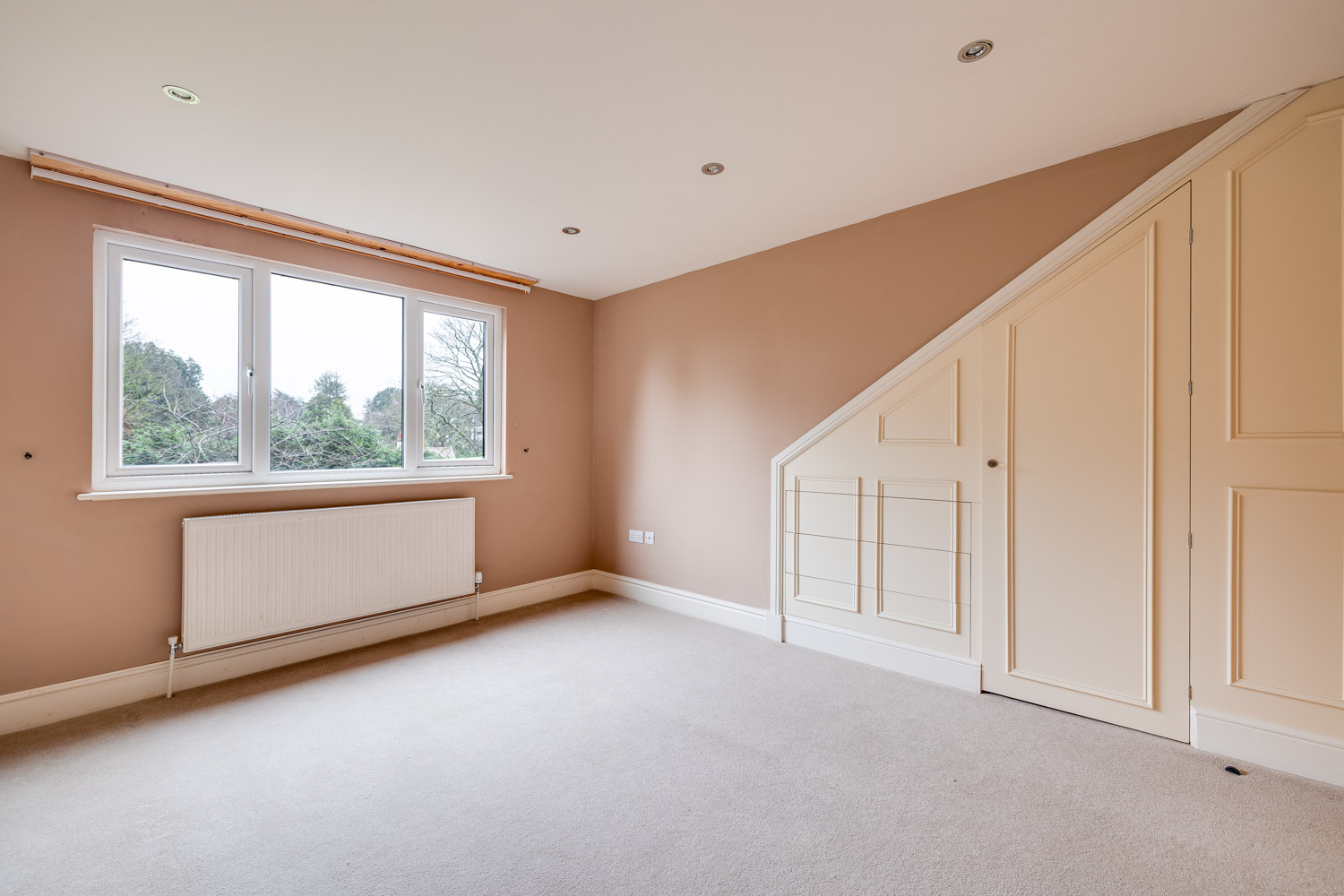 The second floor reveals two further expansive bedrooms, a bathroom and an additional walk in wardrobe, alongside useful loft storage. This upper level offers remarkable flexibility. It could serve as a private retreat for older children, guest accommodation, or even an alternative principal suite for those seeking added seclusion.