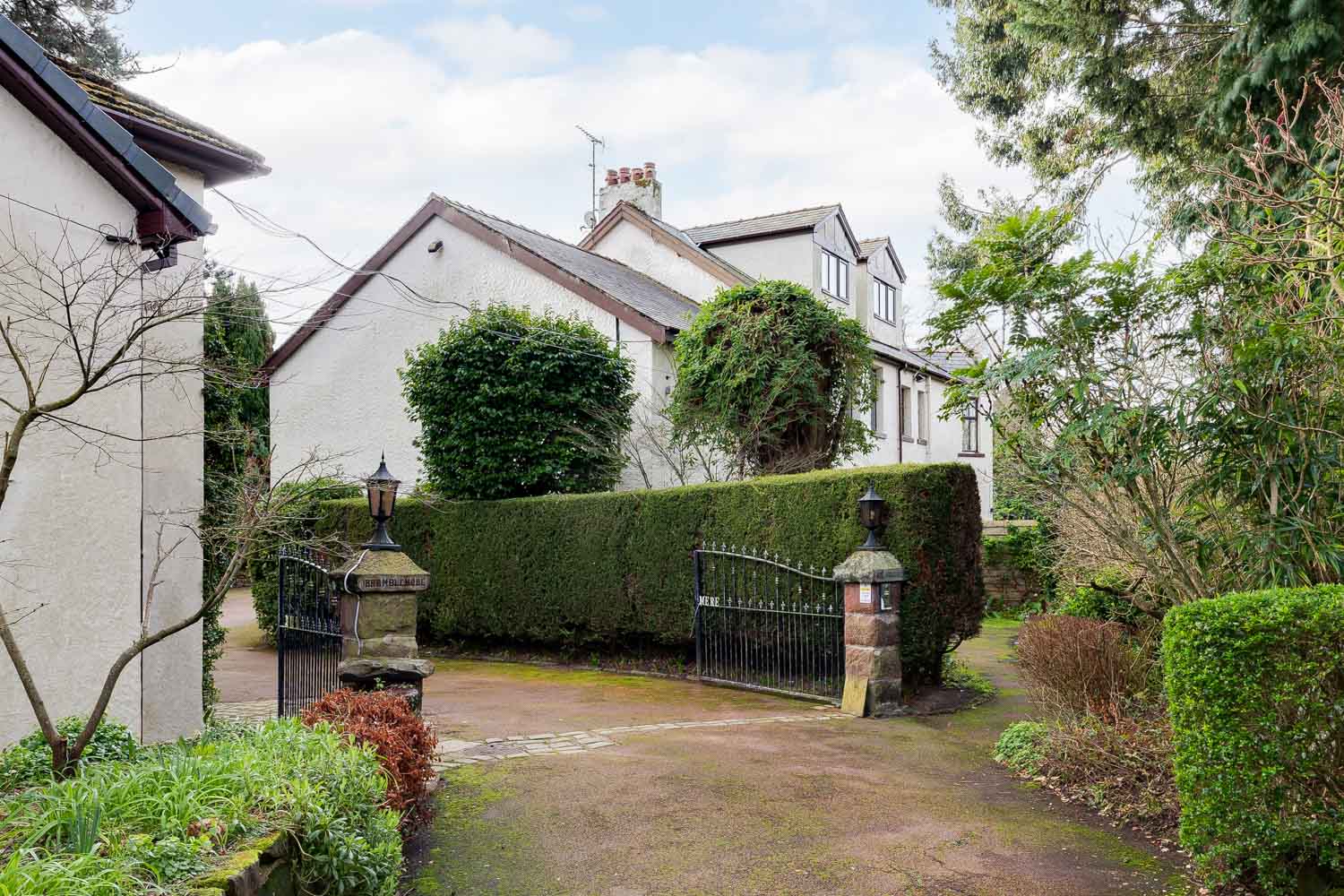 Set behind secure gates on one of Heswall’s most prestigious roads, Bramblemere is a home of rare scale and presence. This imposing six bedroom detached residence unfolds across more than 7,400 sq. ft. of accommodation plus a detached annex, framed by mature grounds that extend beyond one acre. Privacy is absolute, yet the vibrant heart of Heswall remains only moments away.