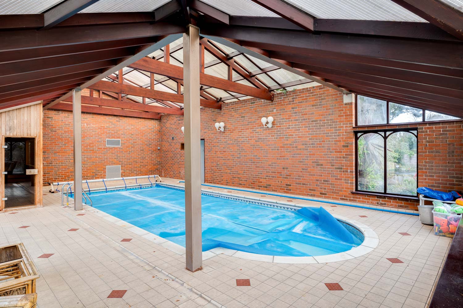Few homes offer such an exceptional range of leisure facilities. Within the grounds, a dedicated complex houses a generous swimming pool, sauna and changing rooms with W.C. Further potential for a steam room and jacuzzi with services already in place. It is a space that transforms daily routines into rituals of wellbeing. Early morning swims, restorative evenings in the sauna and weekends spent poolside become part of everyday life.