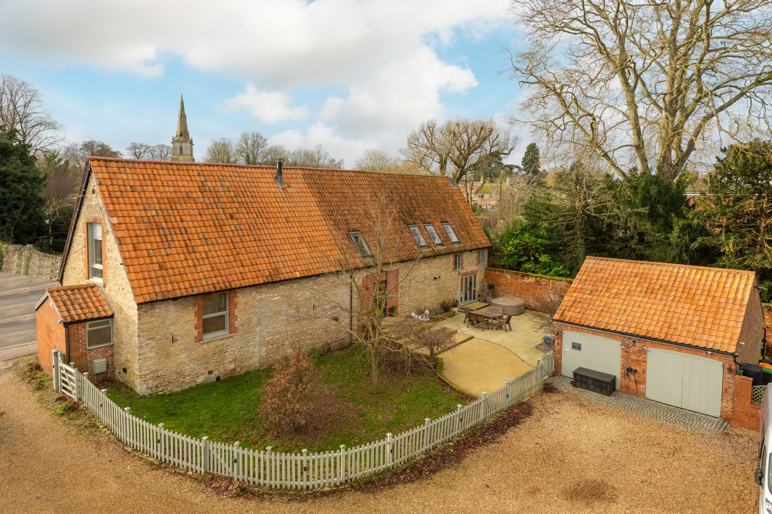 Filled with natural light, this barn boasts excellent open-plan living with vaulted ceilings. It has undergone a meticulous renovation while still retaining many of its original features, such as oak beams, exposed stonework, and well-designed contemporary finishes. The barn has a notable history used as the village hall and a grain store.