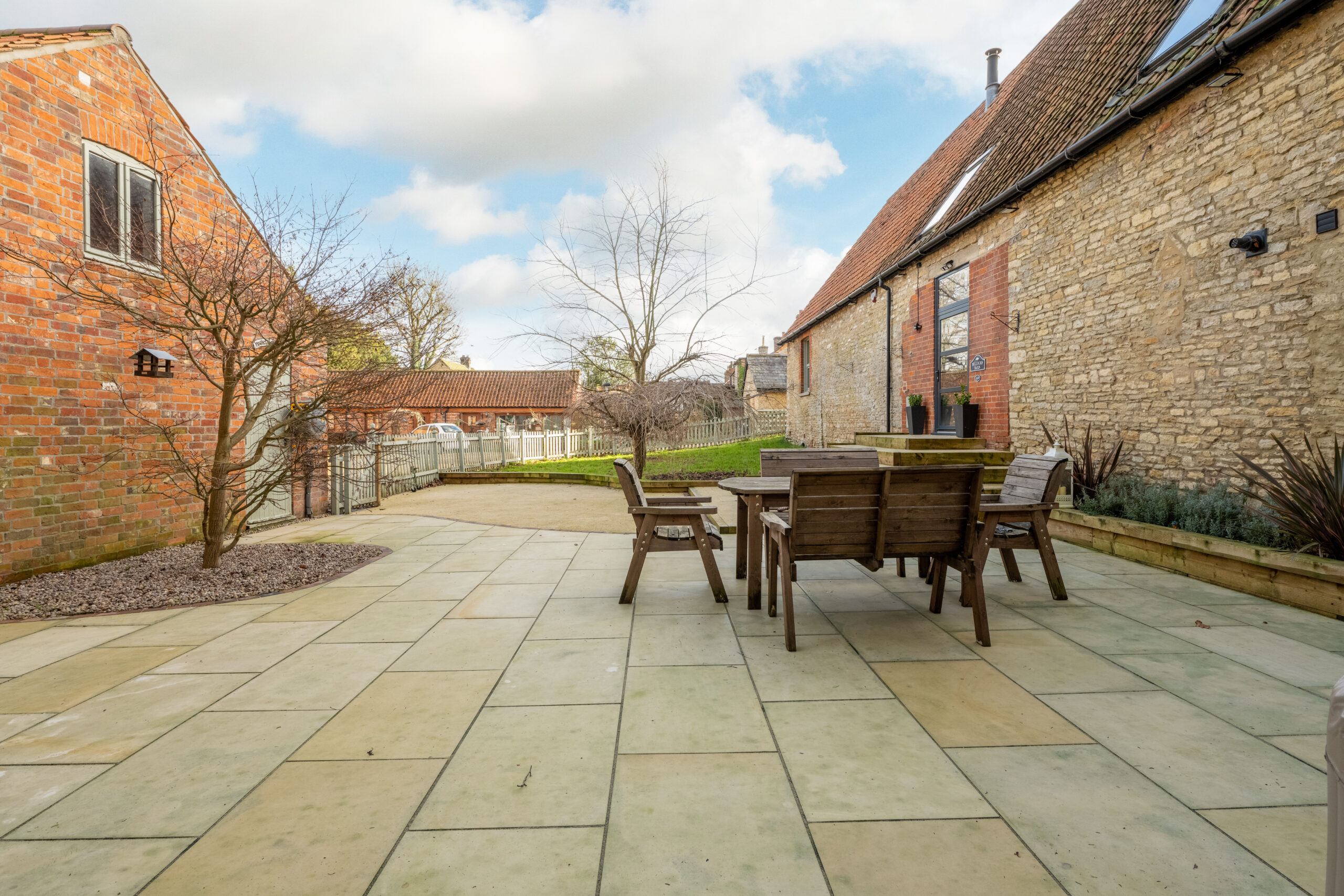 The barn offers spacious accommodation spread across approximately 3,203 sq. ft. with four/five bedrooms. It is one of just three properties located in a private courtyard, providing a peaceful and serene environment.