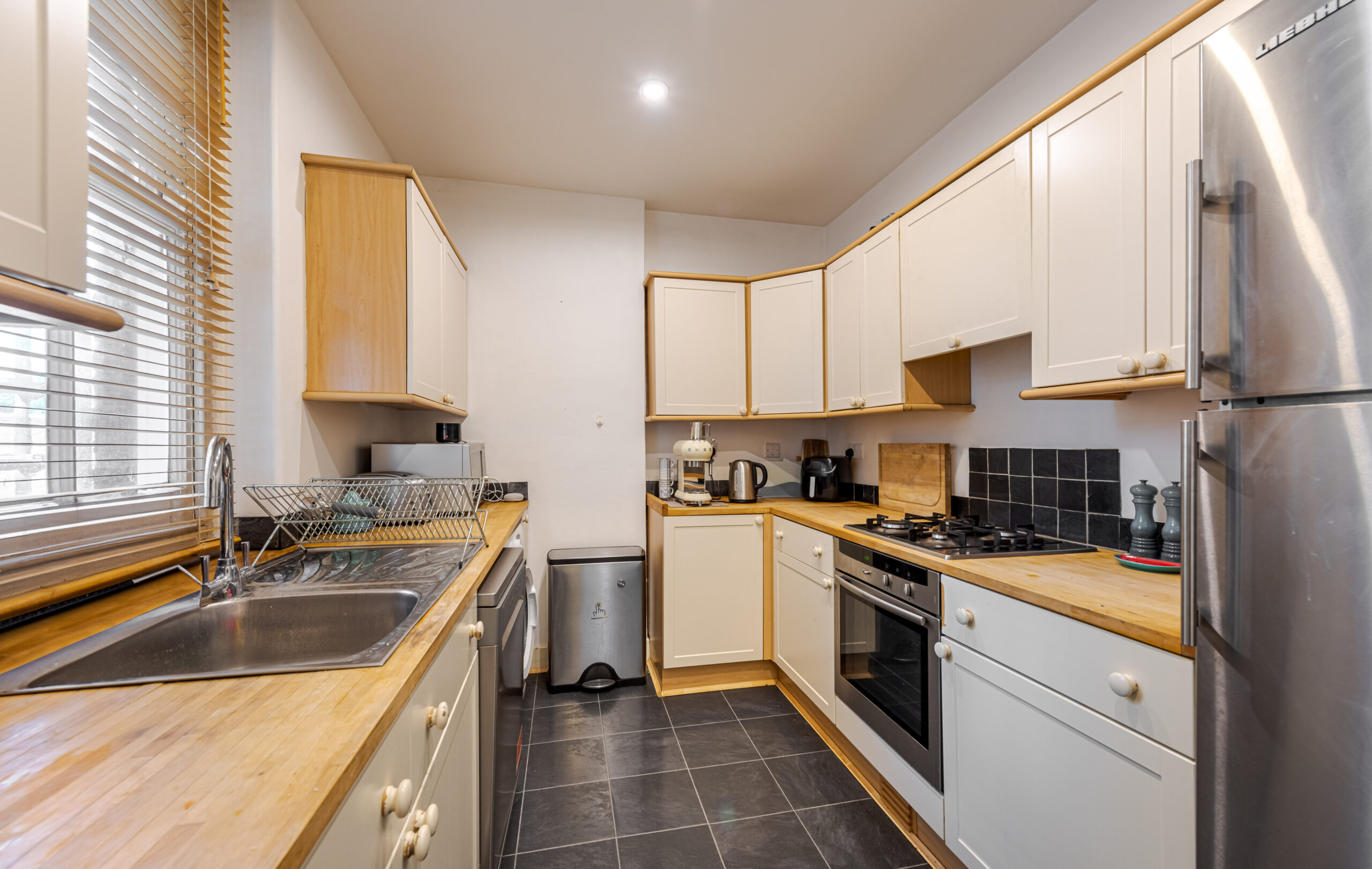 The flat provides well balanced living space with two equally sized double bedrooms, both with built-in storage, and served by a separate bathroom. There is a central entrance hallway which leads to a generous reception room, and the kitchen/dining room has been opened out to provide fantastic entertaining space.