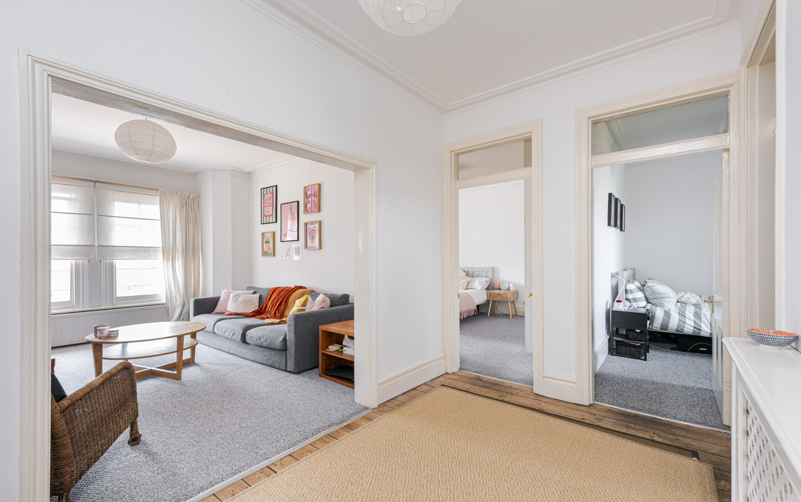 "A beautifully balanced two-bedroom mansion flat moments from Battersea Park, offering generous entertaining space and superb transport links."