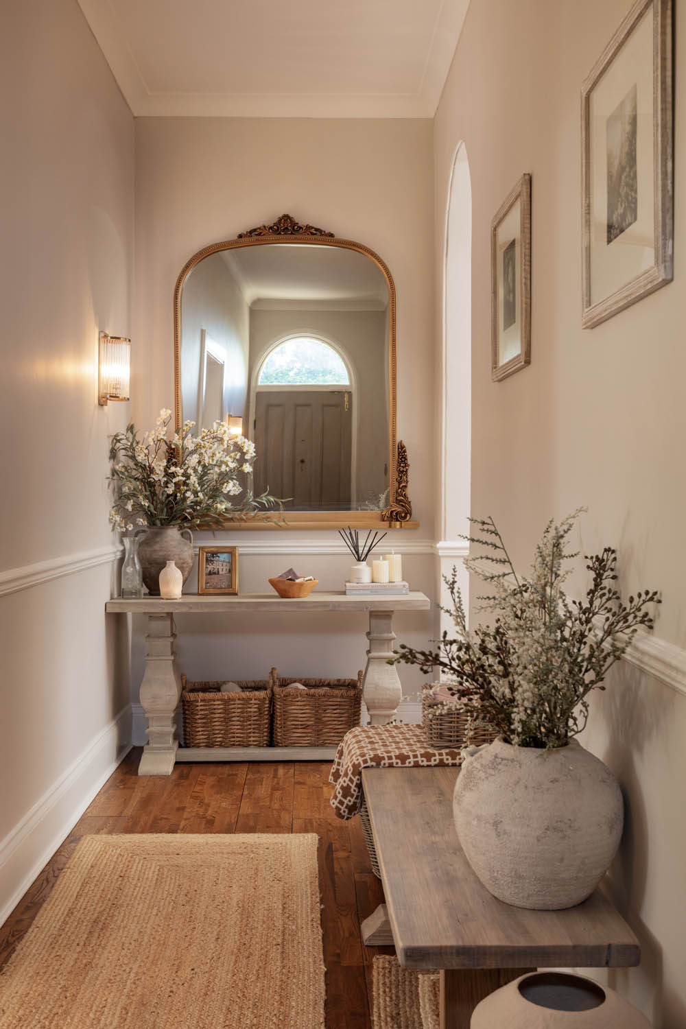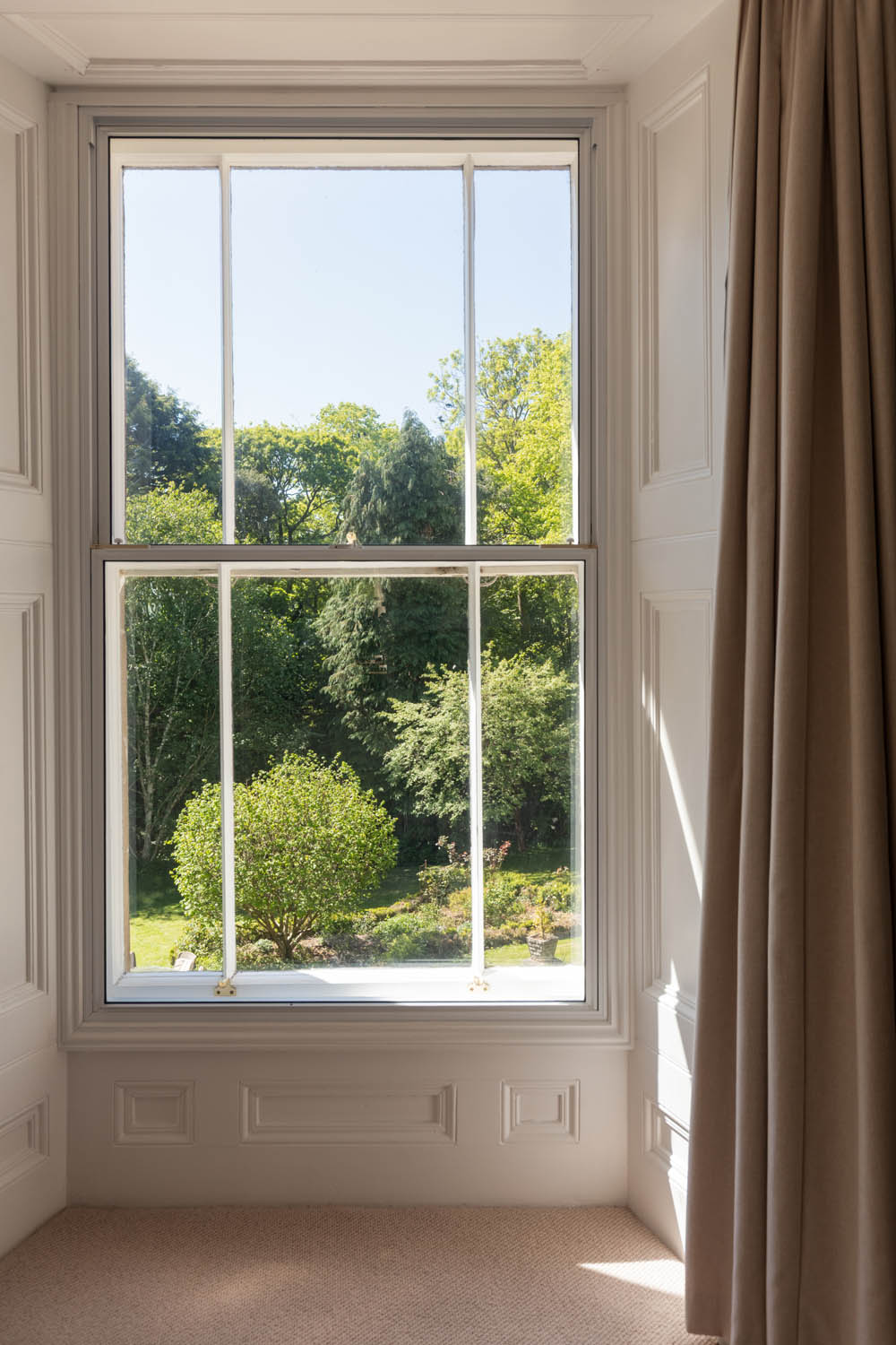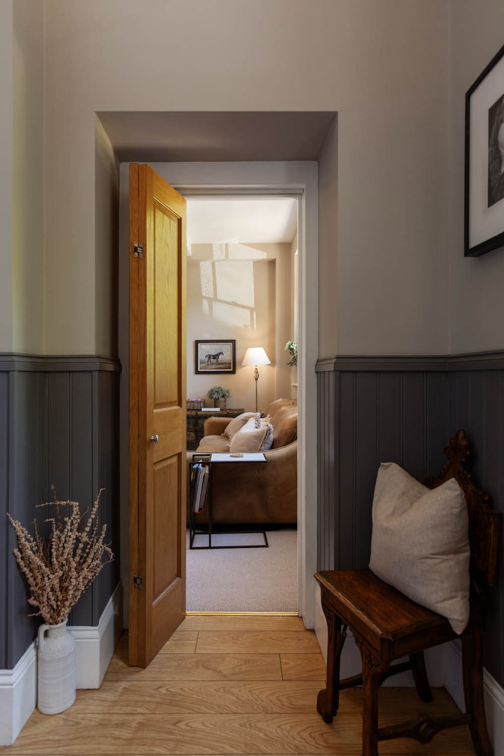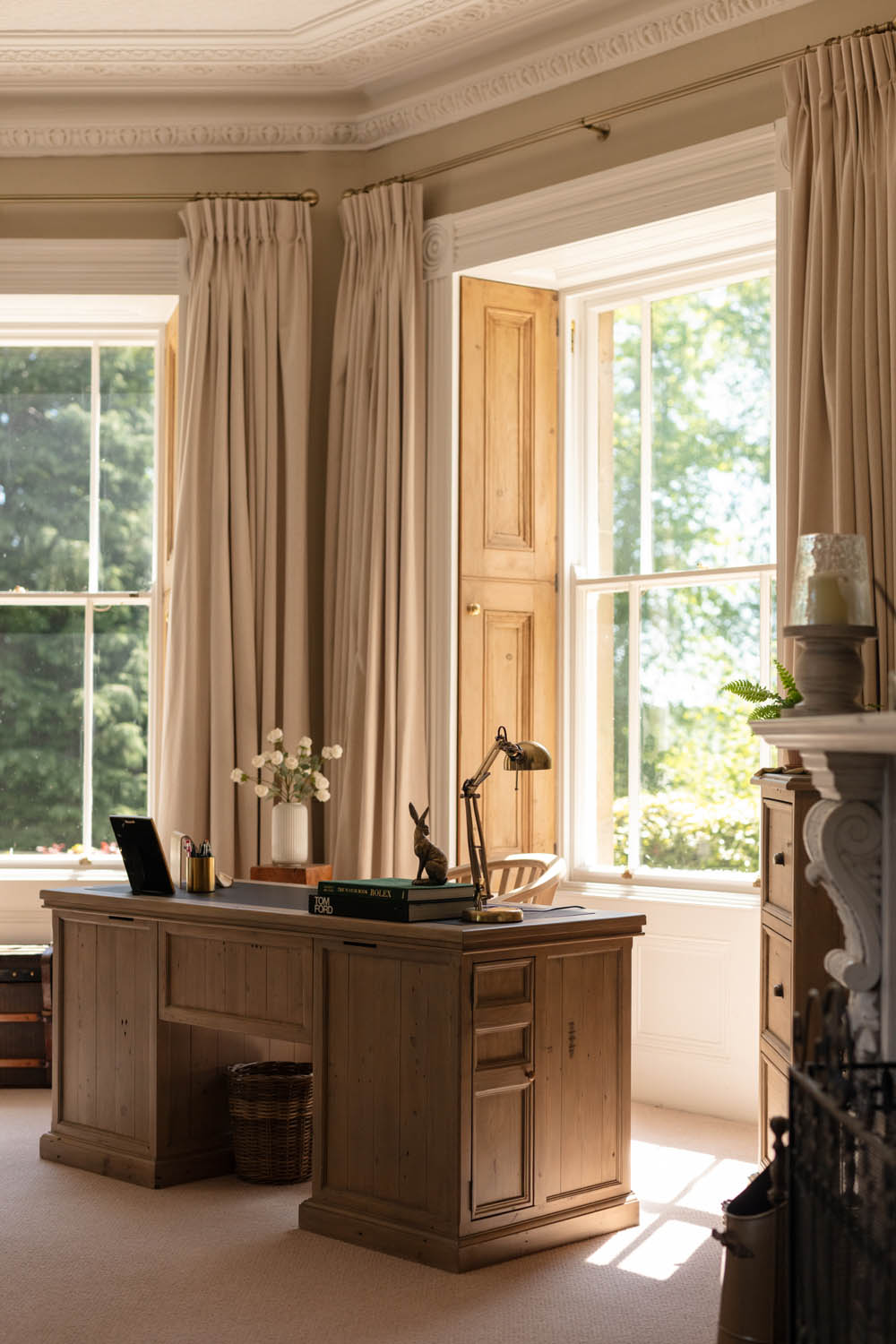 Believed to date from the early-to-mid 1800s, the house retains a wealth of original architectural detail—deep sash windows with working shutters, ornate ceiling cornices, and stone fireplaces with carved surrounds, while the interior has been extensively renovated in recent years to create a comfortable and highly individual family home. A restrained, natural palette ties the spaces together, allowing the scale and character of the rooms to take focus.