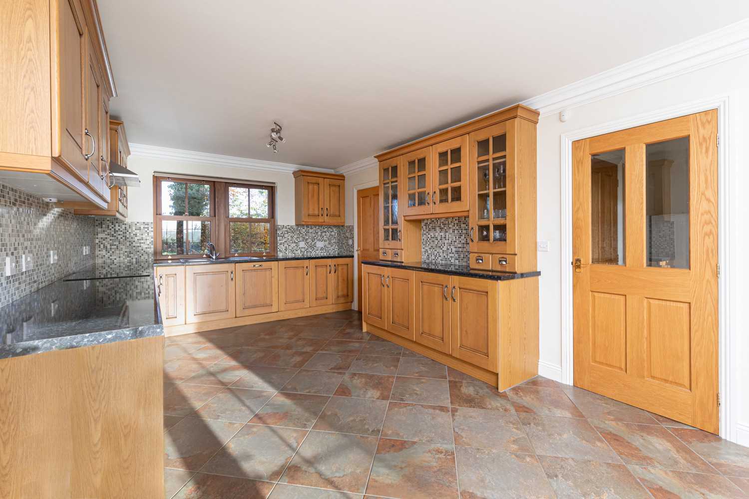 The large entrance hall opens onto a fantastic sitting room and garden room, the latter with exposed wooden ceiling beams, underfloor heating, double doors out into the garden and fabulous views across the fields. Light floods in through the many windows and creates a wonderful and homely place to relax and entertain. Across the other side of the entrance hall is the kitchen/dining room with an excellent range of wooden wall and floor units and integrated appliances including a double oven, dishwasher and electric hob. There is ample space for a good sized table and chairs beside the double doors into the garden, to enjoy further magnificent views whilst dining. Off the kitchen is a useful utility room plumbed for a washing machine and with space for a tumble dryer and large fridge/freezer. A WC and a handy porch can be found to the rear of the house.