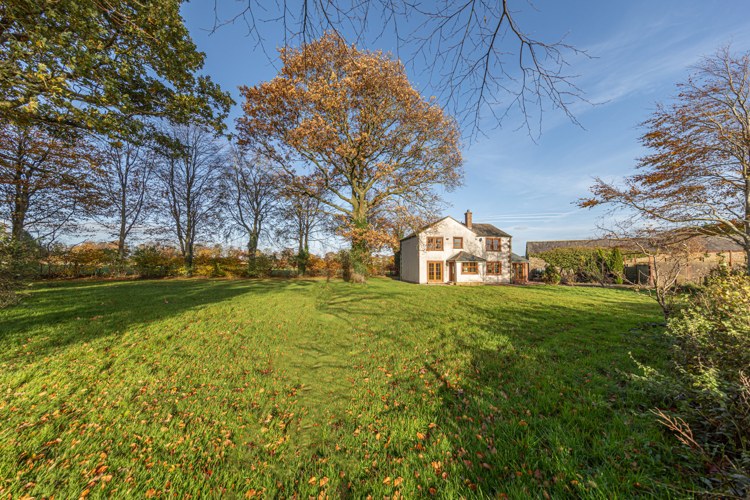 Accessed via a gated tarmacadam driveway leading to paved parking for several vehicles, Crofton Hall Farm sits in the centre of a generous plot with private lawns, mature trees and amazing open countryside views. A raised gravel area beside the house is perfect for growing a variety of plants and shrubs.