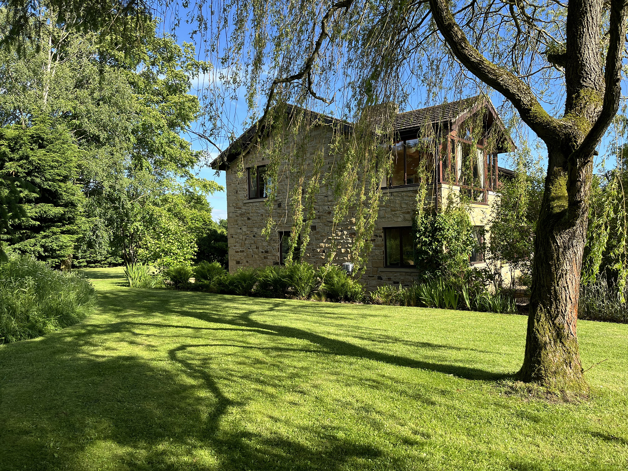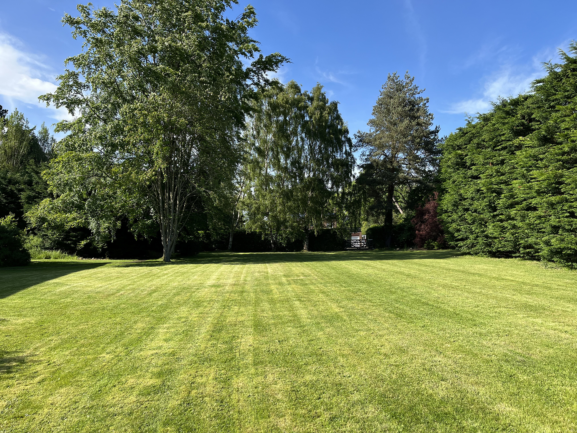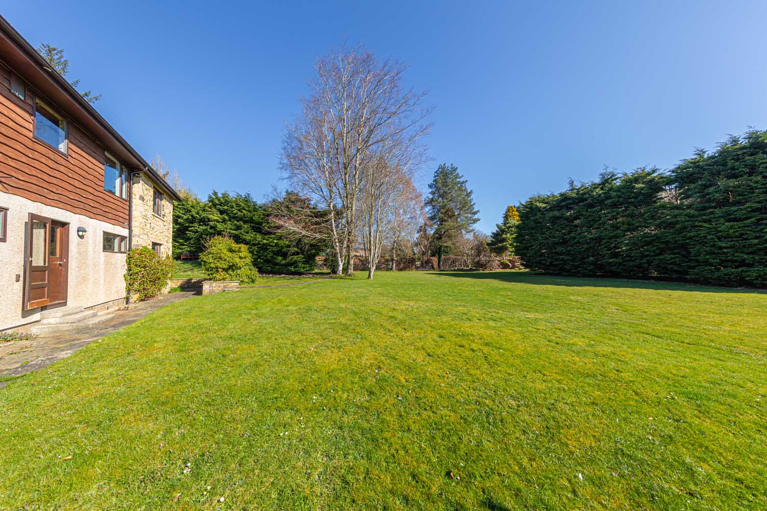 The house sits within beautifully established grounds, enclosed by hedging and mature trees that offer excellent seclusion. The rear garden is wide, gently sloping, and predominantly laid to lawn, with a mix of specimen planting and ample space for further landscaping. Subject to the necessary planning permissions, the size and positioning of the plot may also present scope for the creation of a secondary dwelling or ancillary accommodation. A single detached garage sits to one side, with driveway parking for multiple vehicles.
