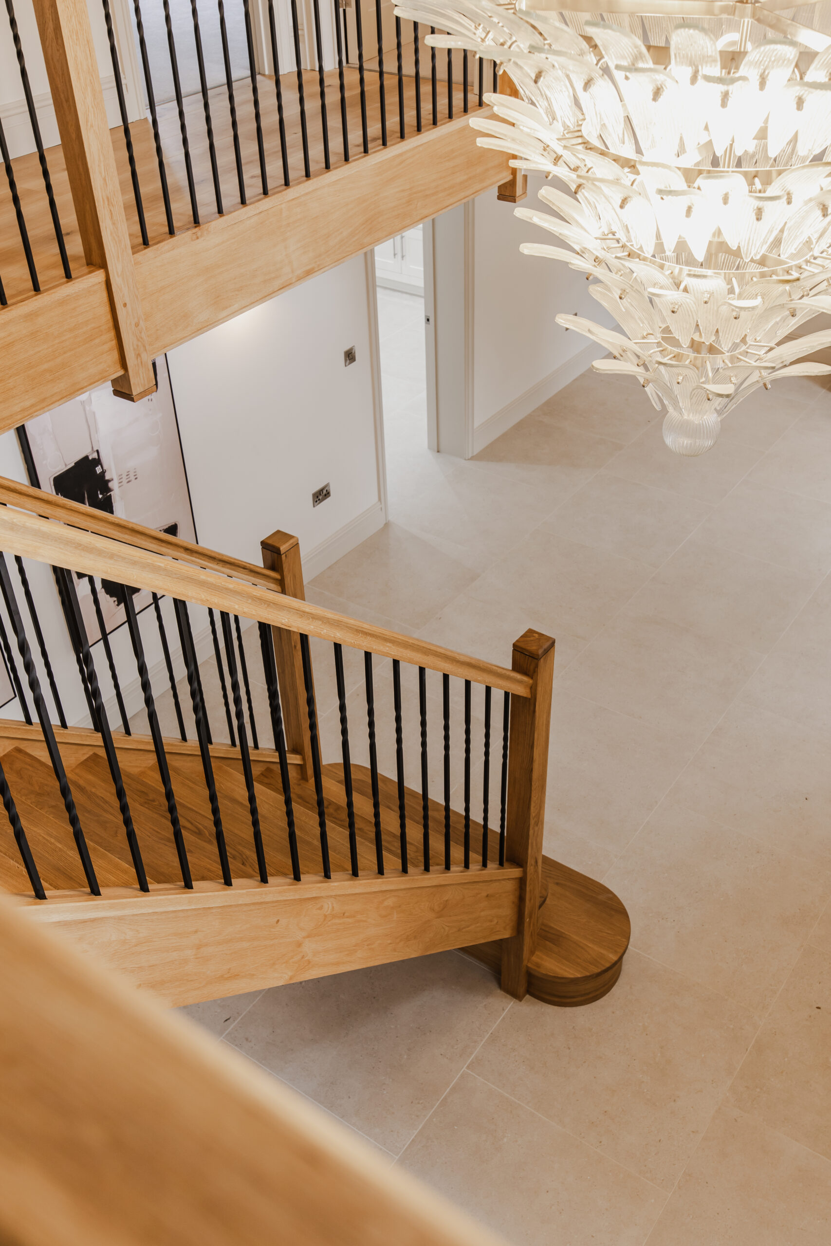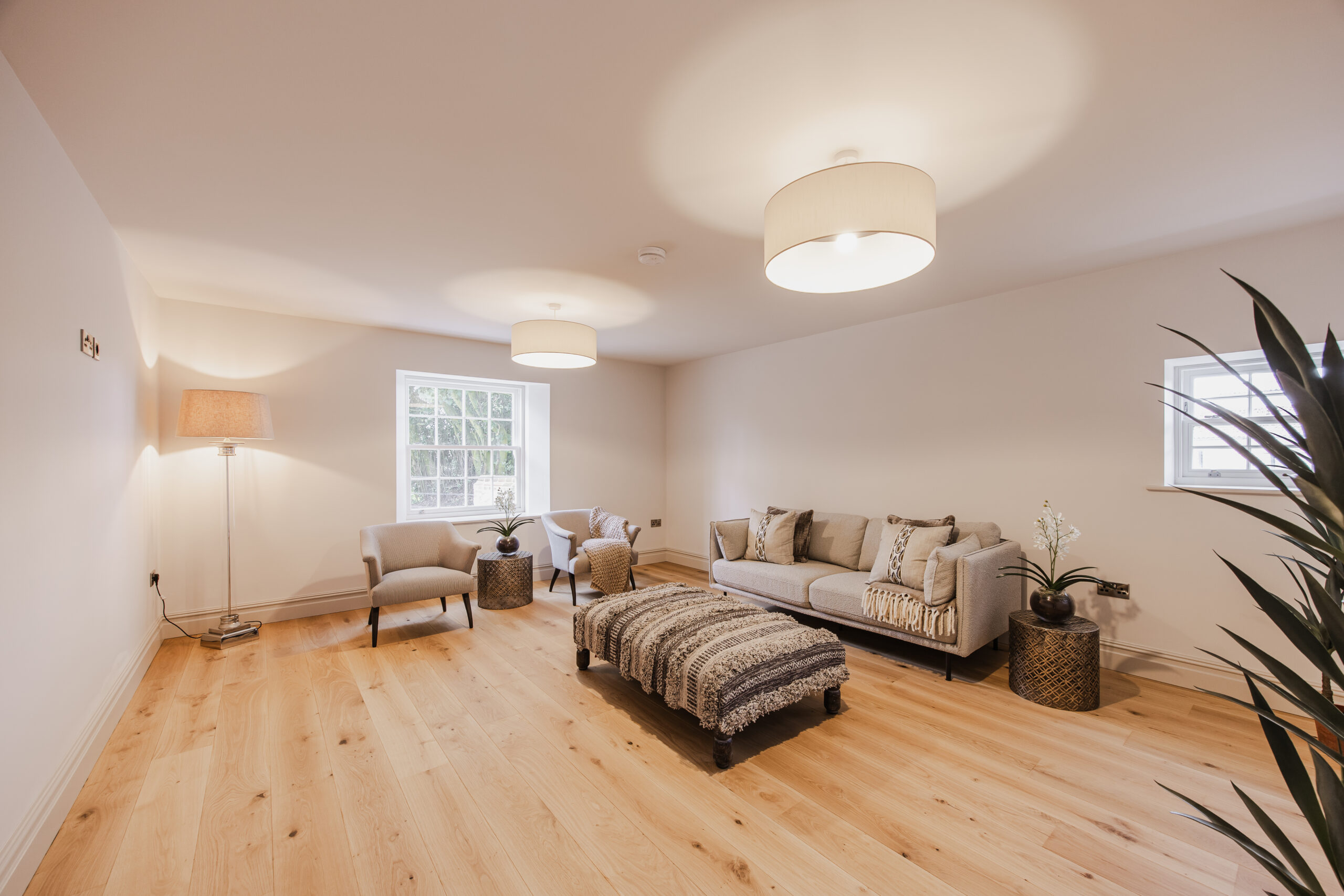 The ground floor is remarkably generous. Entering through what was once the original front door, you are welcomed by an impressive central hall, double height with a sweeping staircase rising to a galleried landing above, setting the tone for the rest of the house.