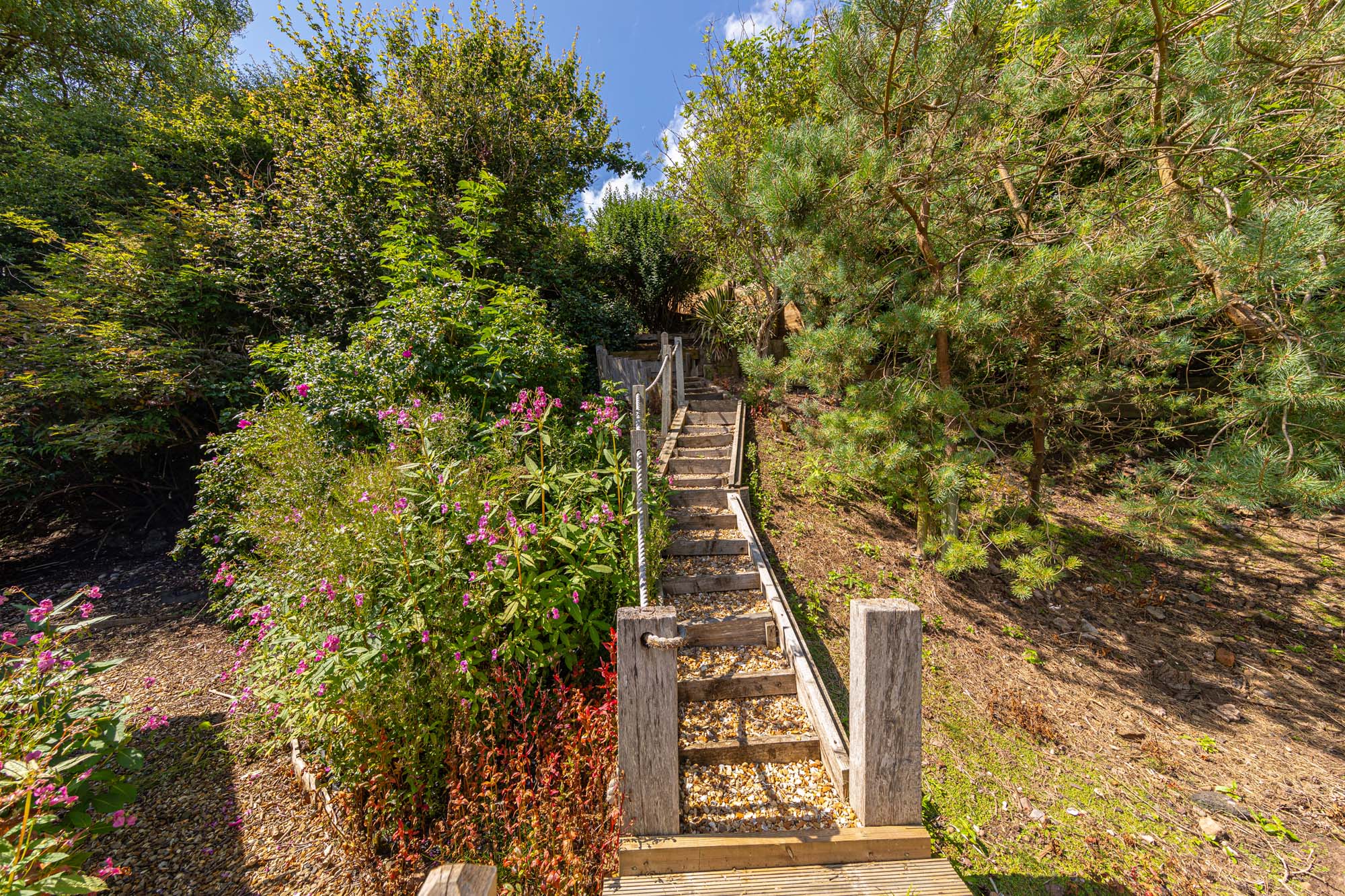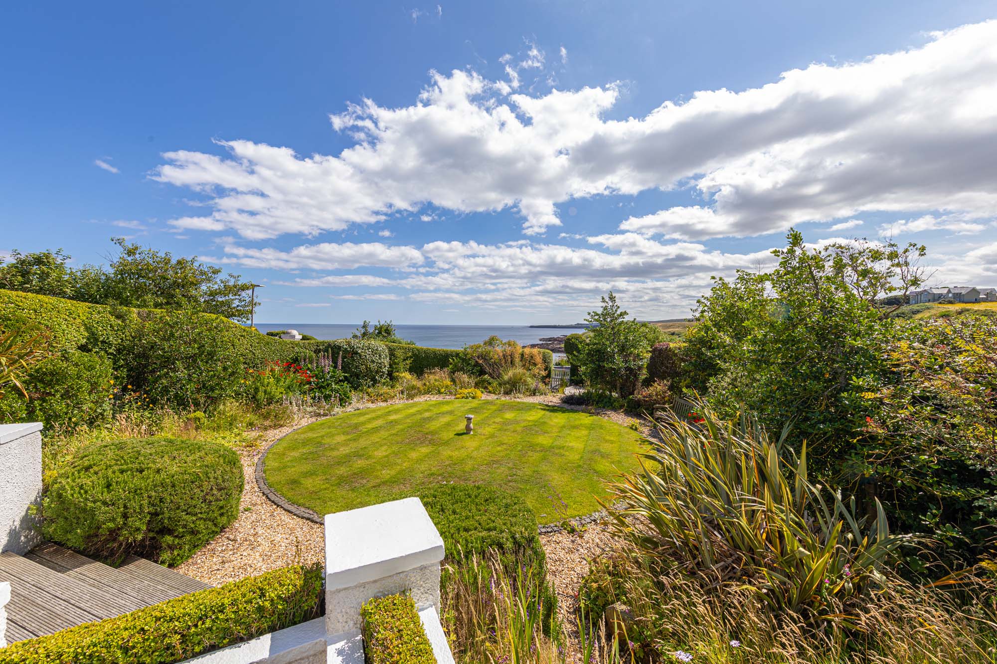 The notable highlight is the landscaped gardens that immediately surround Ebbastrand. These gardens offer total privacy and ample space for relaxation and entertaining. The main garden, facing southeast, overlooks the bay and features a concealed pond with sensor lighting, extensive hardwood decking, a circular central lawn, and gravel pathways.