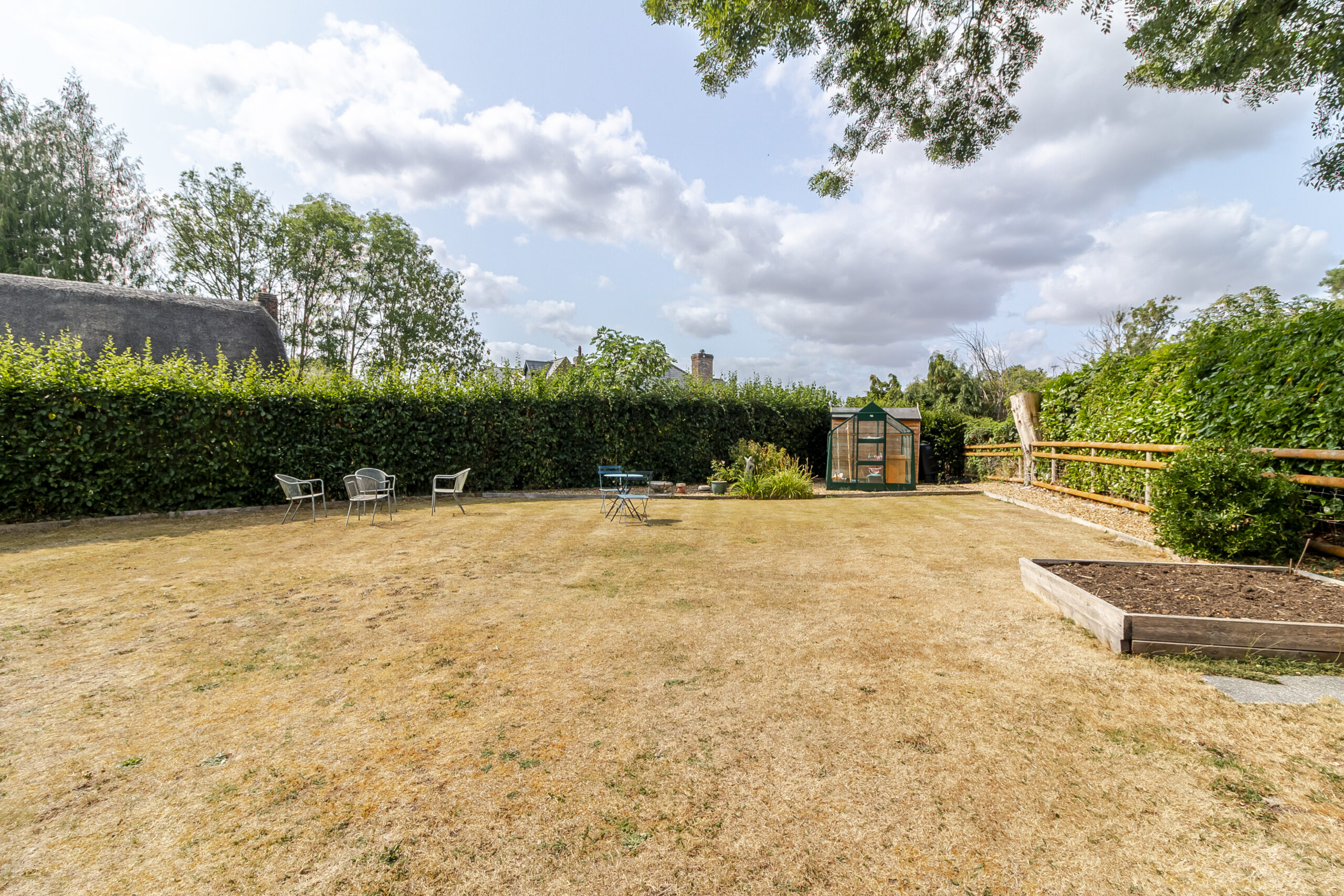 Practical improvements include a complete rethatch of the south elevation in 2019, a new oil-fired boiler and bunded tank in 2018, upgraded radiators, replacement hardwood doors, and a fully converted garage now serving as a well-equipped utility space. A resurfaced driveway offers parking for three vehicles.