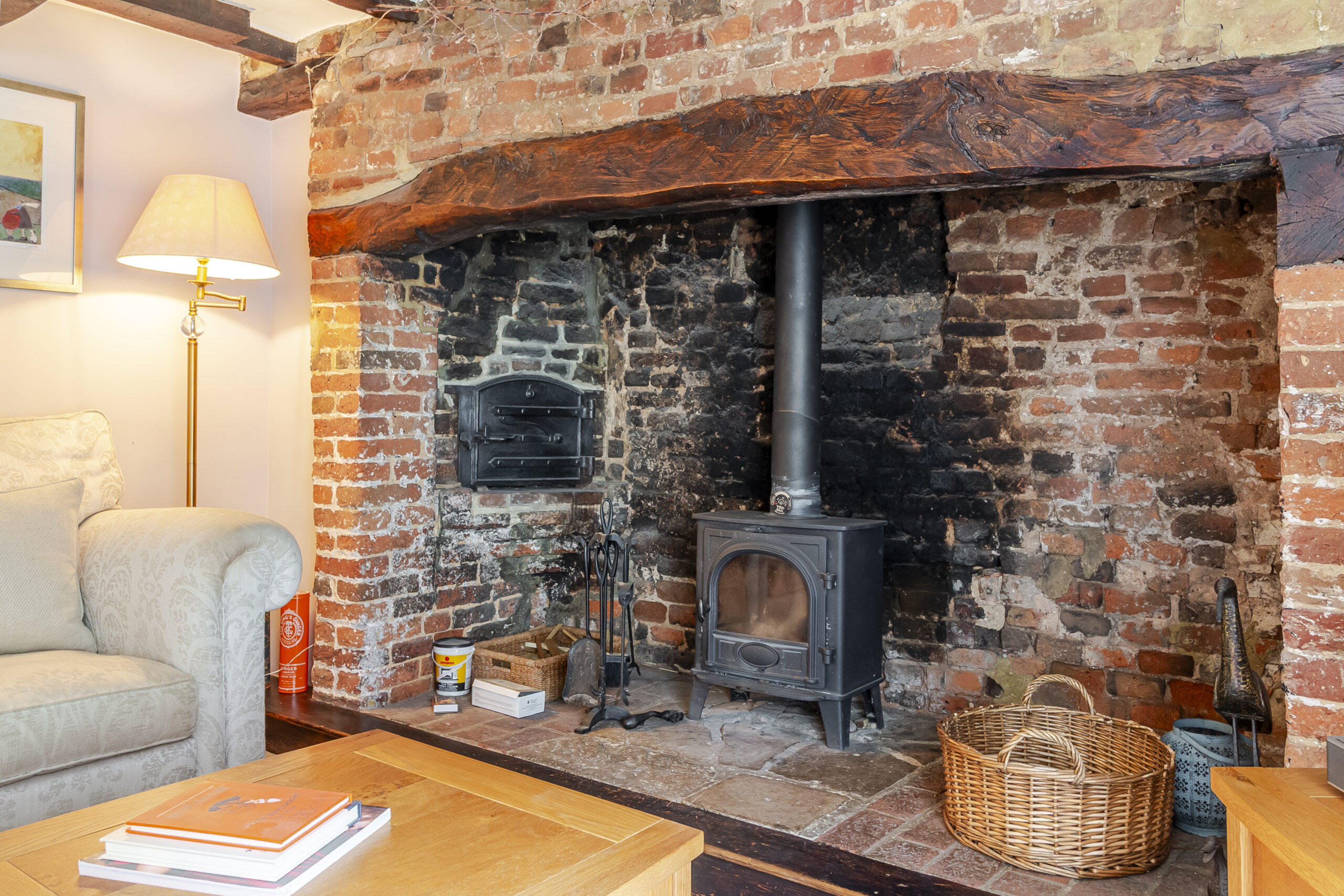 The traditional canopied porch leads into a welcoming living and dining room, now opened up to create one sociable space. It’s a room that works just as well for slow winter evenings by the Inglenook fireplace with wood-burning stove as it does for lively family gatherings. Exposed beams, hardwood double-glazed windows, and original features like the bread oven bring character to every corner.