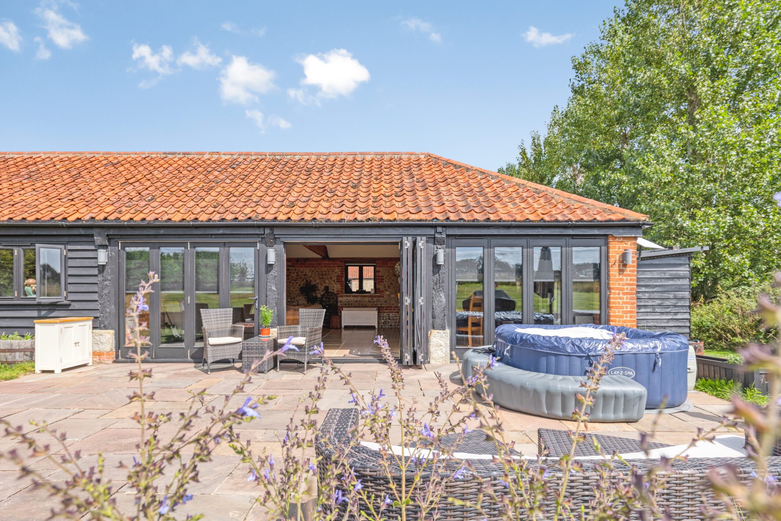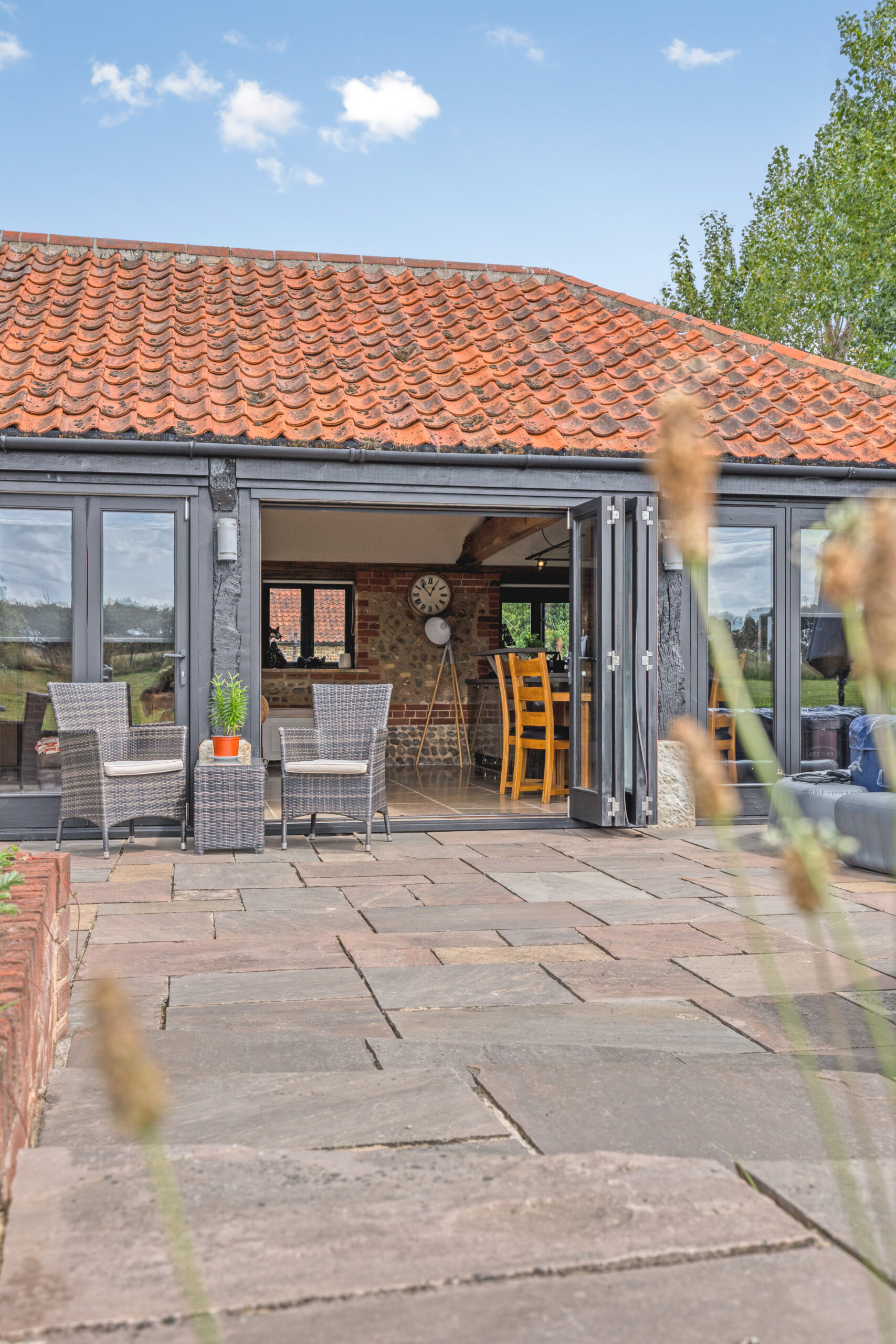 To the rear, the expansive garden is primarily laid to lawn with a sprawling sun terrace ideally positioned to make the very best of the all-day sunshine. A border of mature hedges makes for a lovely soft boundary whilst far reaching countryside views grace every outlook from the plot – a magical spot in which to soak up our famous big Norfolk skies.