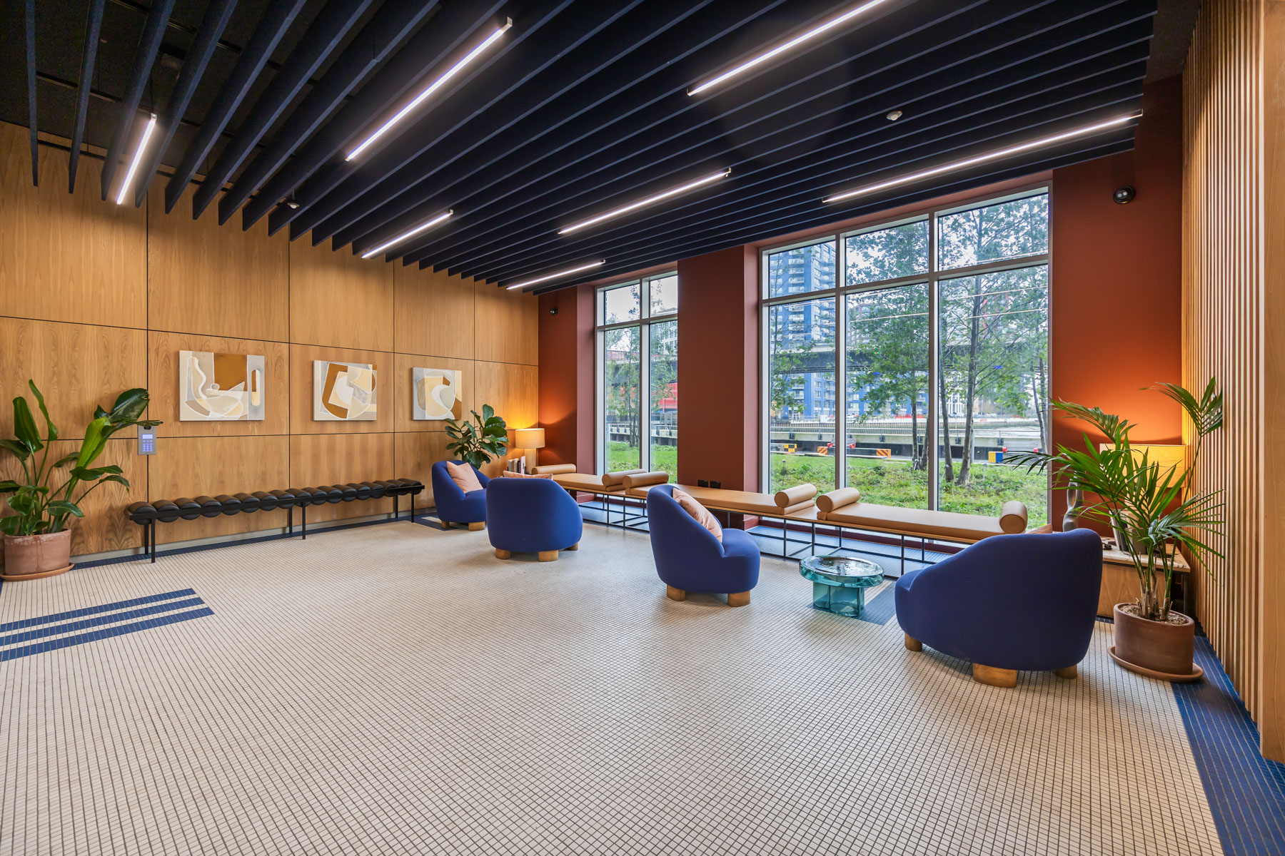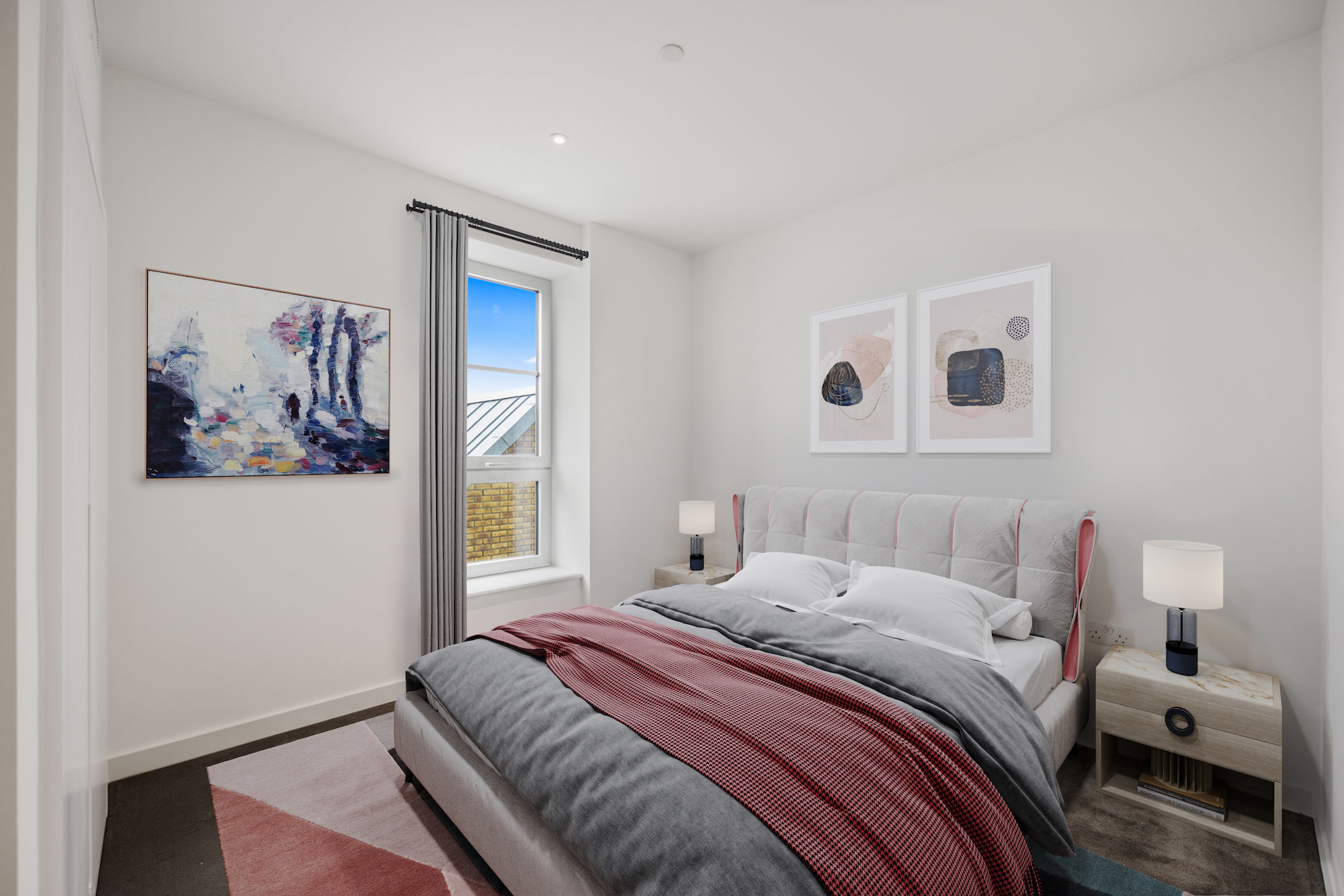 Residents are able to enjoy extensive amenities with lobbies, screening room and a sky lounge which all seamlessly double as work and leisure spaces. Wellness is delivered by the 25m swimming pool, Scandinavian outdoor sauna, gym and work out studios available to all residents. Site wide security is provided through the estate management team, who look after and tend the garden squares and access to the Thames footpath for those seeking solace in open space. With Sainsbury’s on your doorstep and coffee easy to transfer to hand as well as a number of independent bars, restaurants and grocers all your immediate needs are well covered.