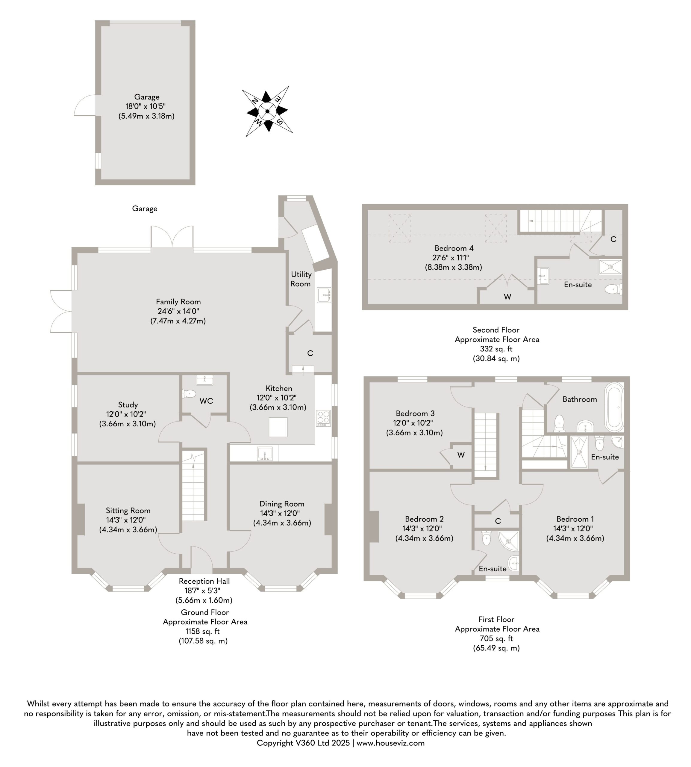 Across the upper floors, the accommodation continues to impress. There are four spacious bedrooms and four beautifully appointed bathrooms, three of which are en suite. Each bedroom has been carefully finished to provide both comfort and style, with soft tones and refined detailing that complement the home’s original features. The principal bedroom suite offers a calm and relaxing retreat with its luxurious en-suite bathroom and delightful views over the surrounding area.