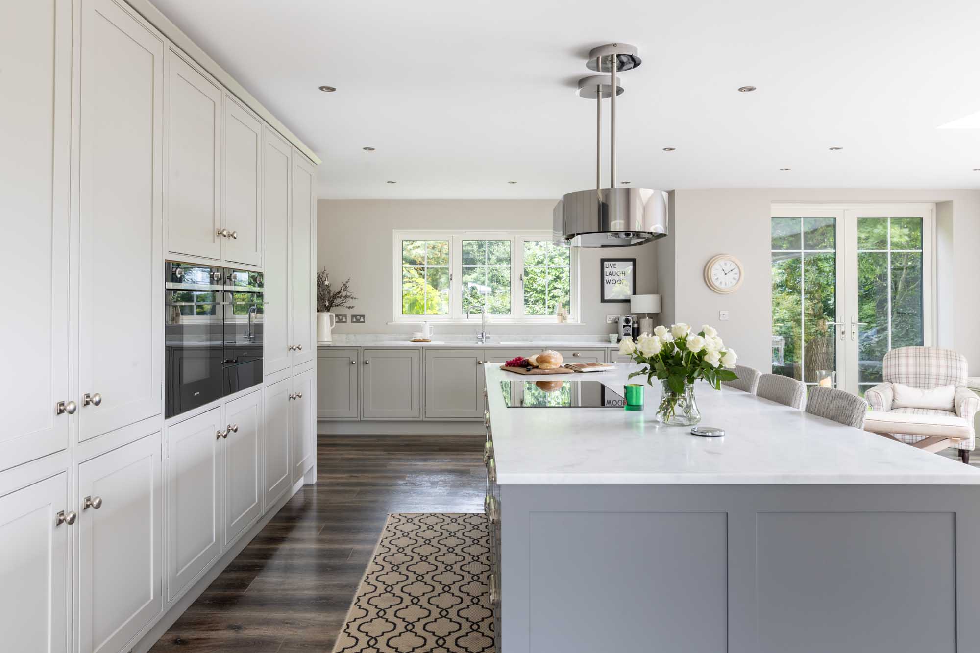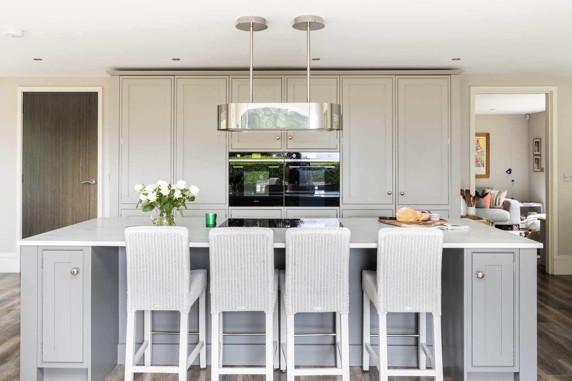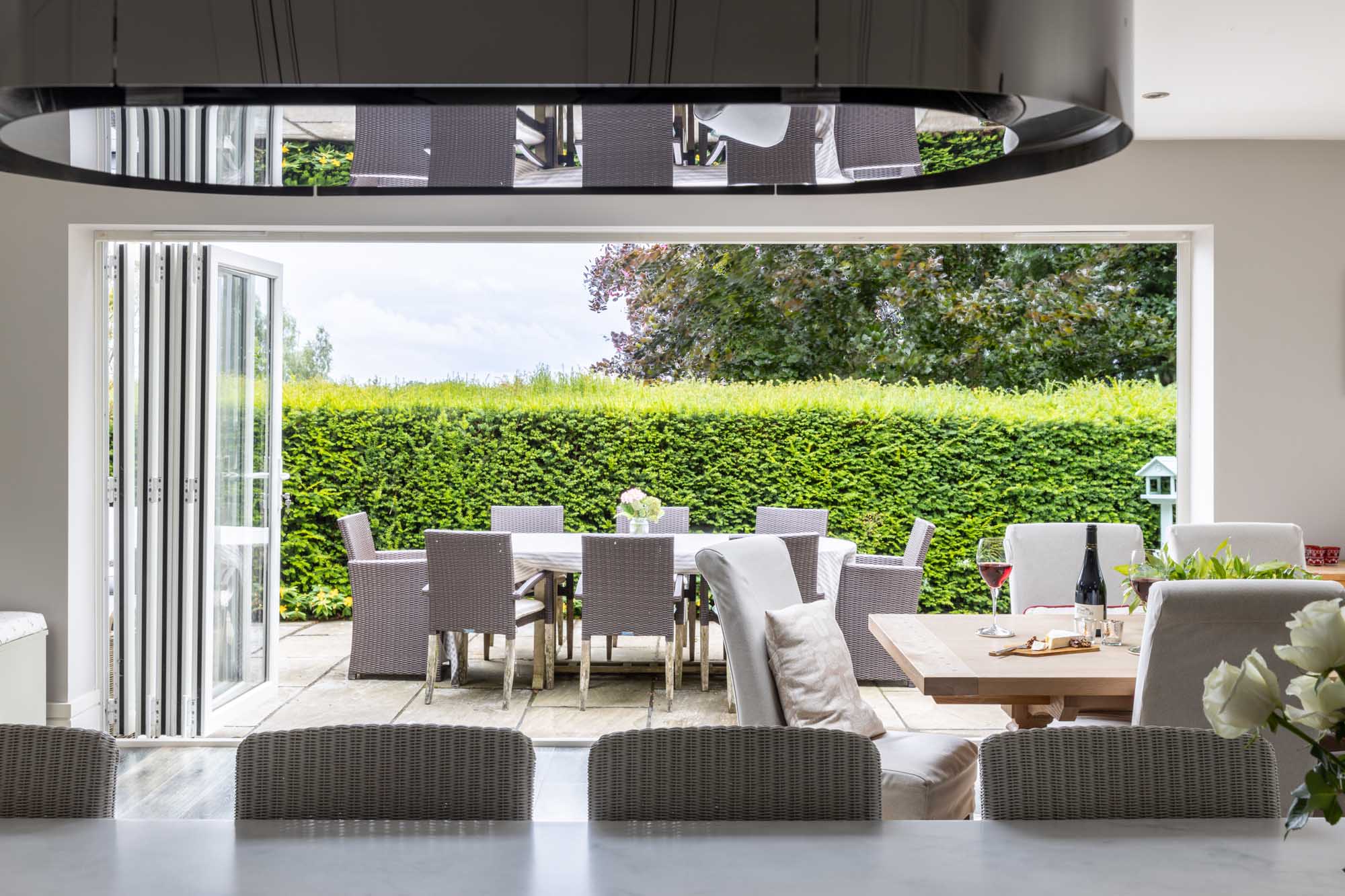 At the heart of the home is the bespoke kitchen by Hawthorne and May – a chef’s dream, featuring sleek Smeg appliances and a large central island, perfect for socializing. The bi-fold doors extend the kitchen space out to the garden, creating a harmonious indoor-outdoor flow, ideal for summer dining or simply enjoying the fresh air.