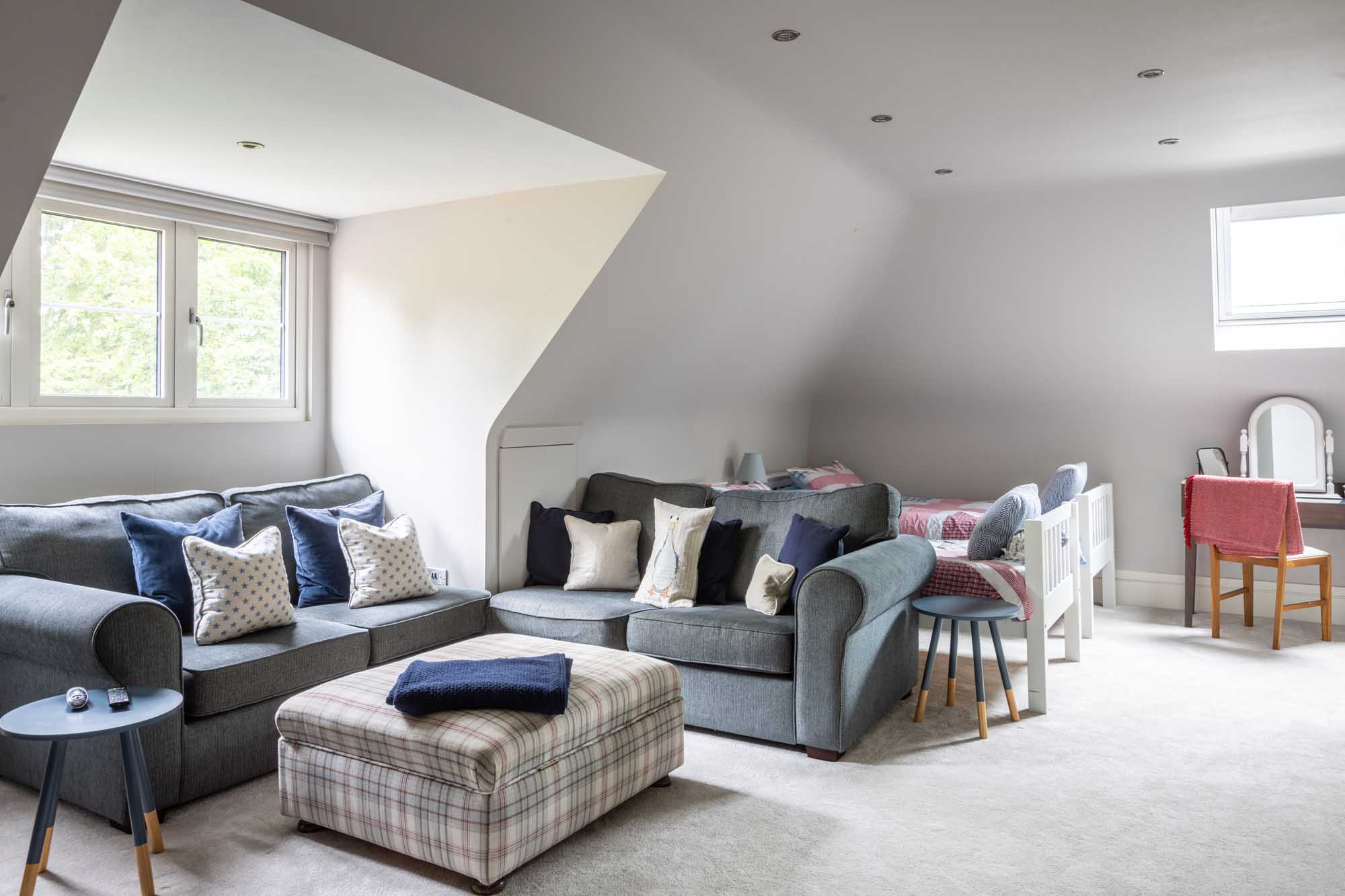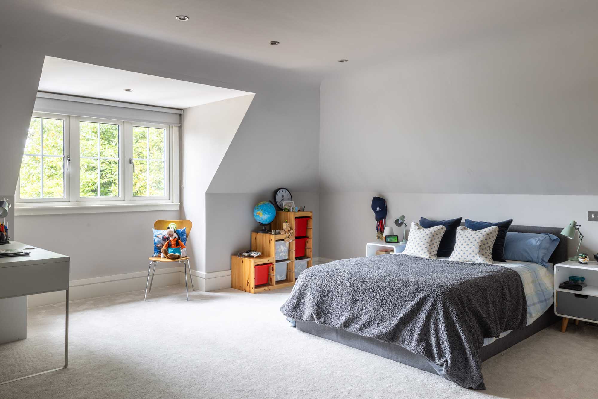 The upper levels boast six spacious bedrooms, four of which have private en-suite bathrooms, providing both privacy and luxury. With sanitary ware from C.P. Hart and Duravit, every bathroom offers a spa-like retreat. In total, the home features five beautifully designed bathrooms, each reflecting high-quality craftsmanship.
