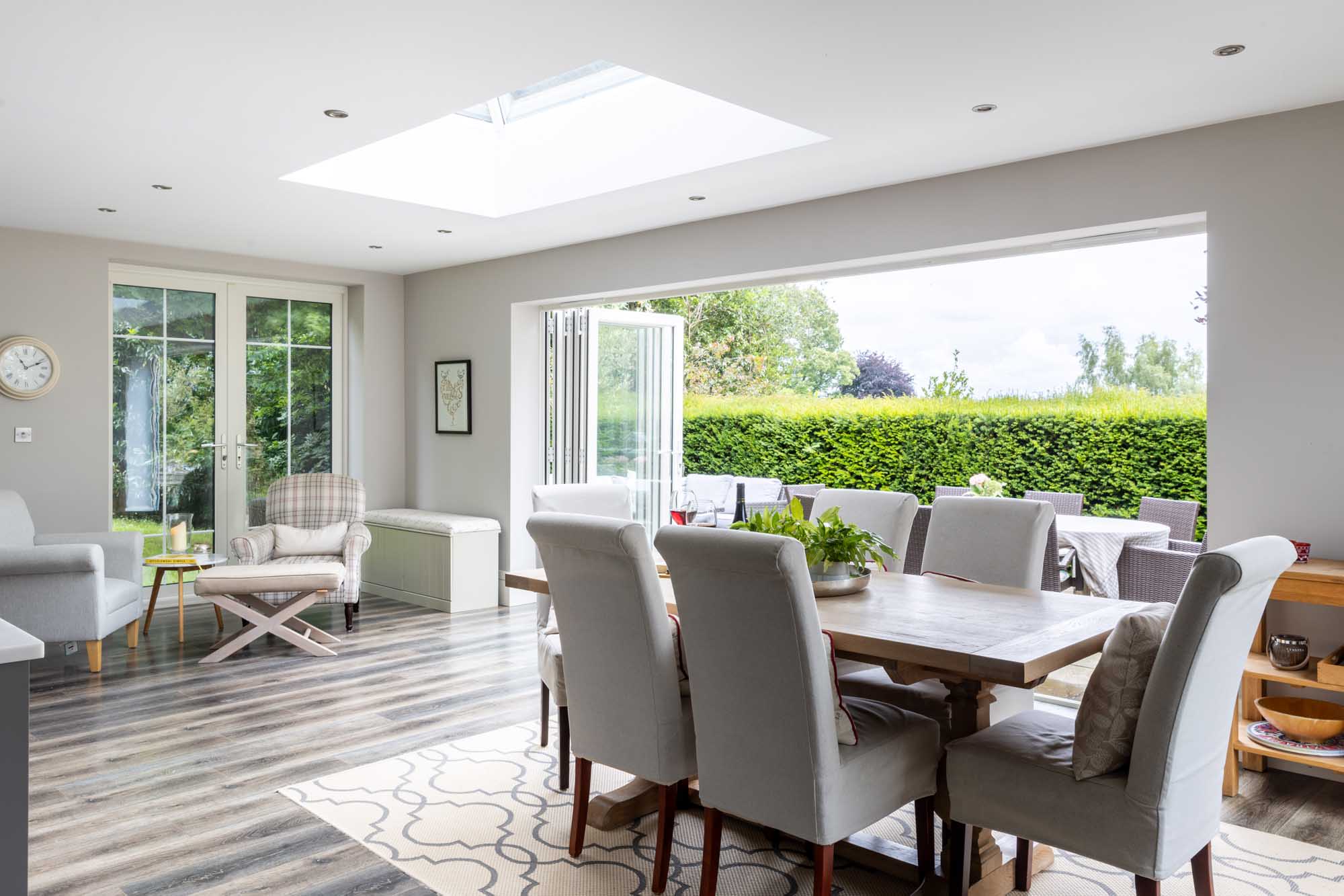As you step through the front door, you’re greeted by an impressive central lightwell that fills the home with natural light, creating a bright, welcoming atmosphere. Almost every window frames tranquil green views, immersing you in the beautiful surroundings. The home is anchored by four versatile reception rooms, ideal for both relaxed family evenings and large gatherings. Each room flows effortlessly, balancing open-plan spaces with cozy retreats.