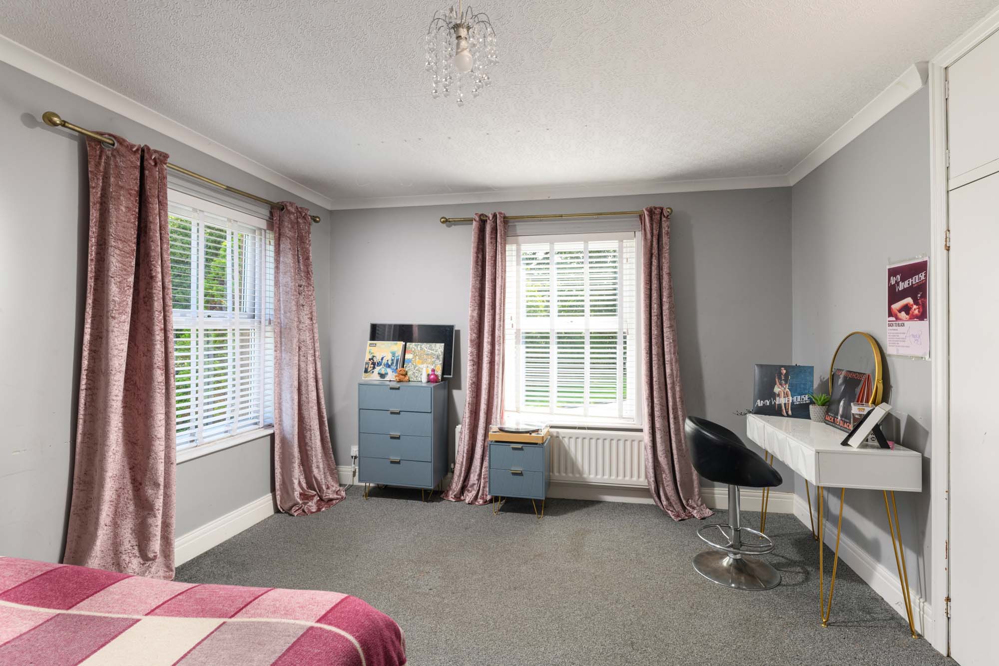 Ascending to the first floor, you’ll find a spacious landing that leads to three double bedrooms and a generous family bathroom. The modern bathroom is well-appointed with a spacious single-ended bath, a large corner shower cubicle, and a convenient double storage cupboard. The principal and second bedrooms both include fitted wardrobes and enjoy dual-aspect views, while the third bedroom, slightly smaller in size, offers charming views over the surrounding farmland. Additionally, there is significant potential to expand the upstairs space by extending over the garage, further enhancing the property’s versatility and value.