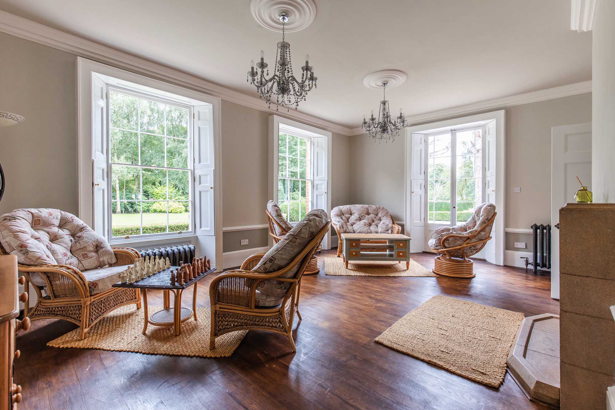 Guests arrive via a circular driveway and upon stepping through the front door they will be transported back in time; the grand square entrance hall, warmed on a winter’s day by a roaring fire! Festive occasions and family gatherings are ready to be had in the panelled reception room, complete with its own turret, the perfect spot for the tree! A country kitchen is ready for cooking up a feast and the garden room, flooded with natural light and with doors onto the garden, tempts you for a morning coffee or afternoon reading corner. Upstairs nine bedrooms are also finished to a meticulous standard, providing a wealth of versatility for larger families or ample guest accommodation. The attic, once the domain of servants, now offers endless possibilities for expansion or further transformation.
