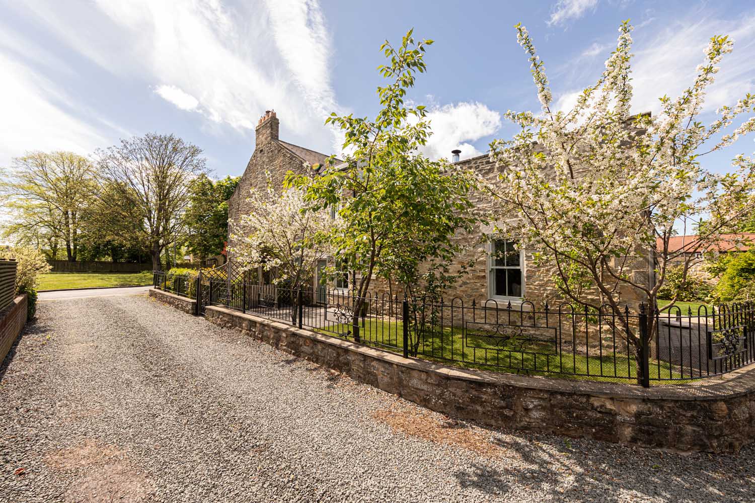 Dating from 1836 and standing proudly beside the green in the heart of Tudhoe Village, Ivy House is a beautifully crafted stone cottage with a warm, decorative interior and far-reaching views toward the fields and paddocks behind. The house combines traditional vernacular charm with a thoroughly personal sense of style, offering five reception rooms, four bedrooms, and a garden that curves gently around the property—punctuated by fruit trees, well-stocked borders, and quiet corners to sit and take in the setting.