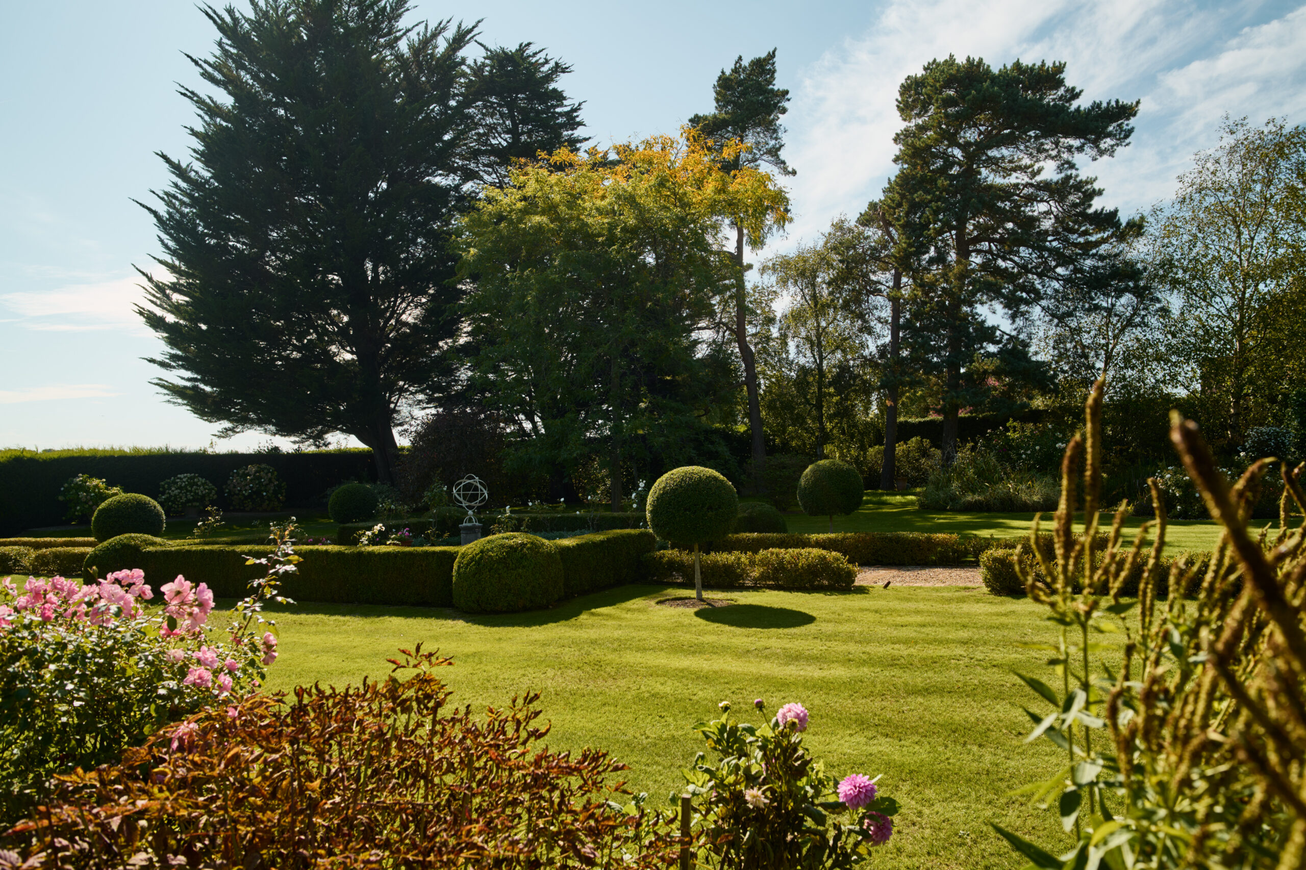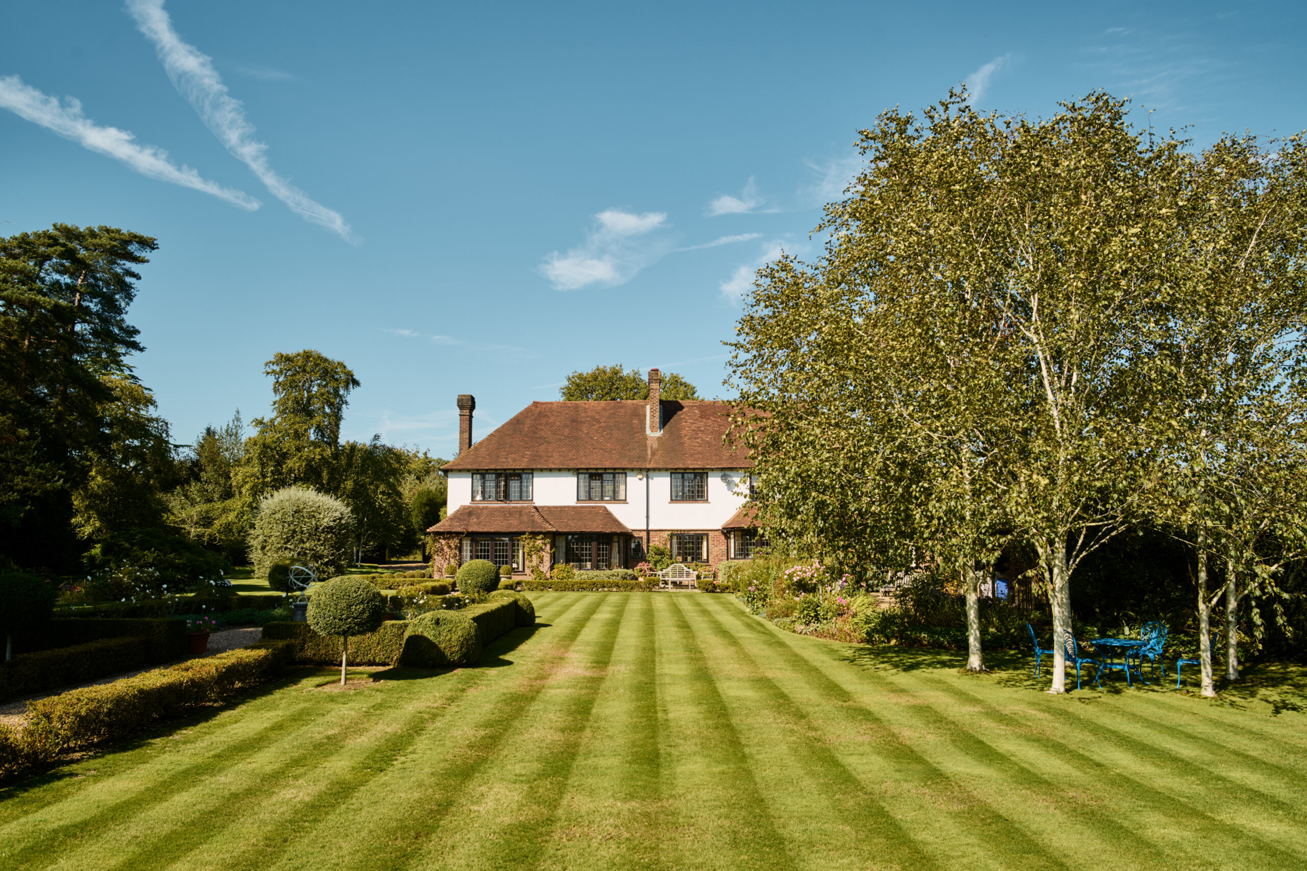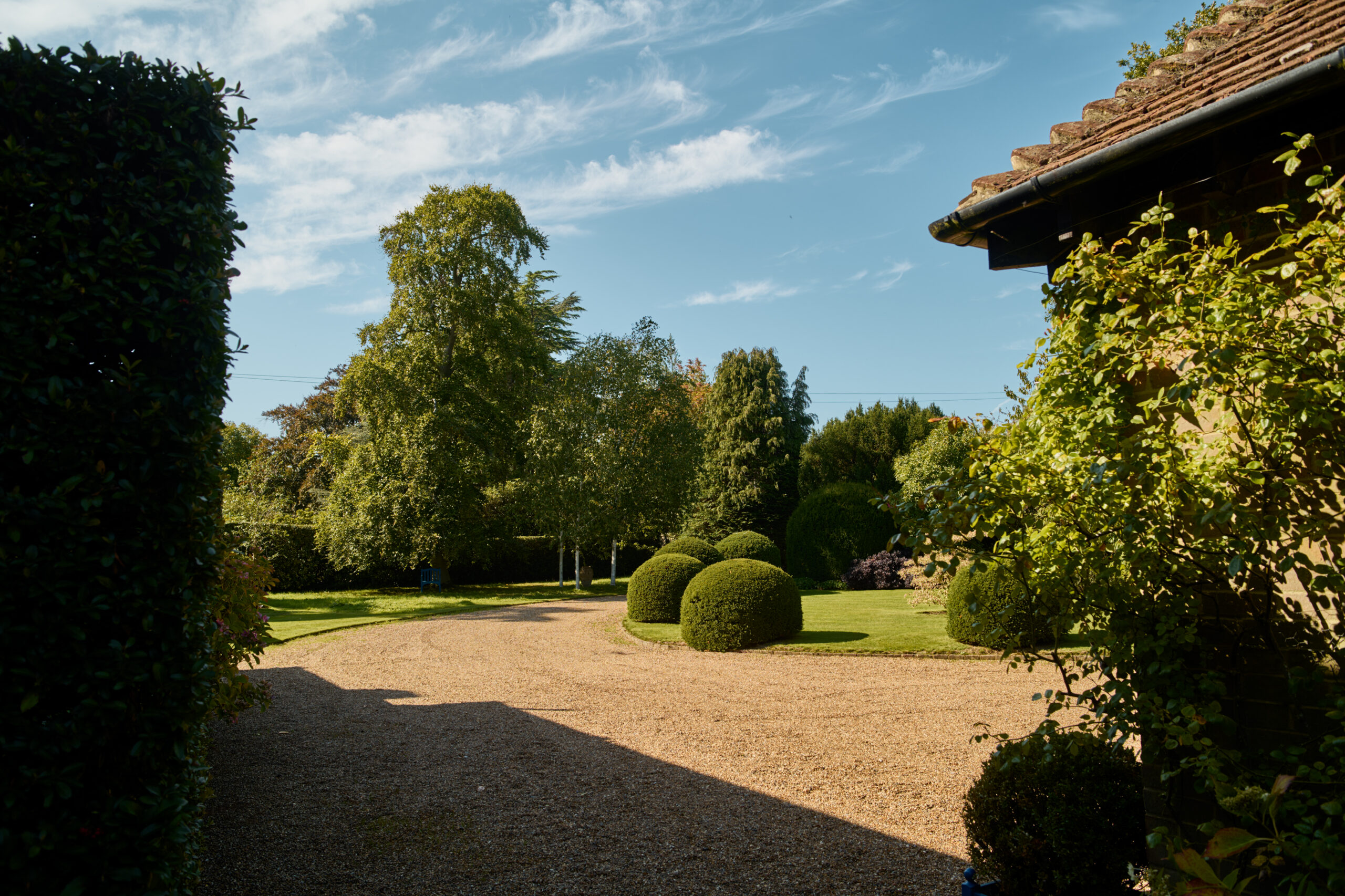 Step outside and you’ll find the grounds are just as thoughtfully planned as the interior. The garden unfolds with generous lawns, mature borders, and hidden pathways that encourage you to explore. One of the standout features is the covered pavilion, offering a charming and sheltered space for al fresco dining or quiet evenings outdoors. Whether you’re entertaining friends or simply enjoying a book with a breeze, it’s the kind of spot that invites you to slow down and savour the setting.