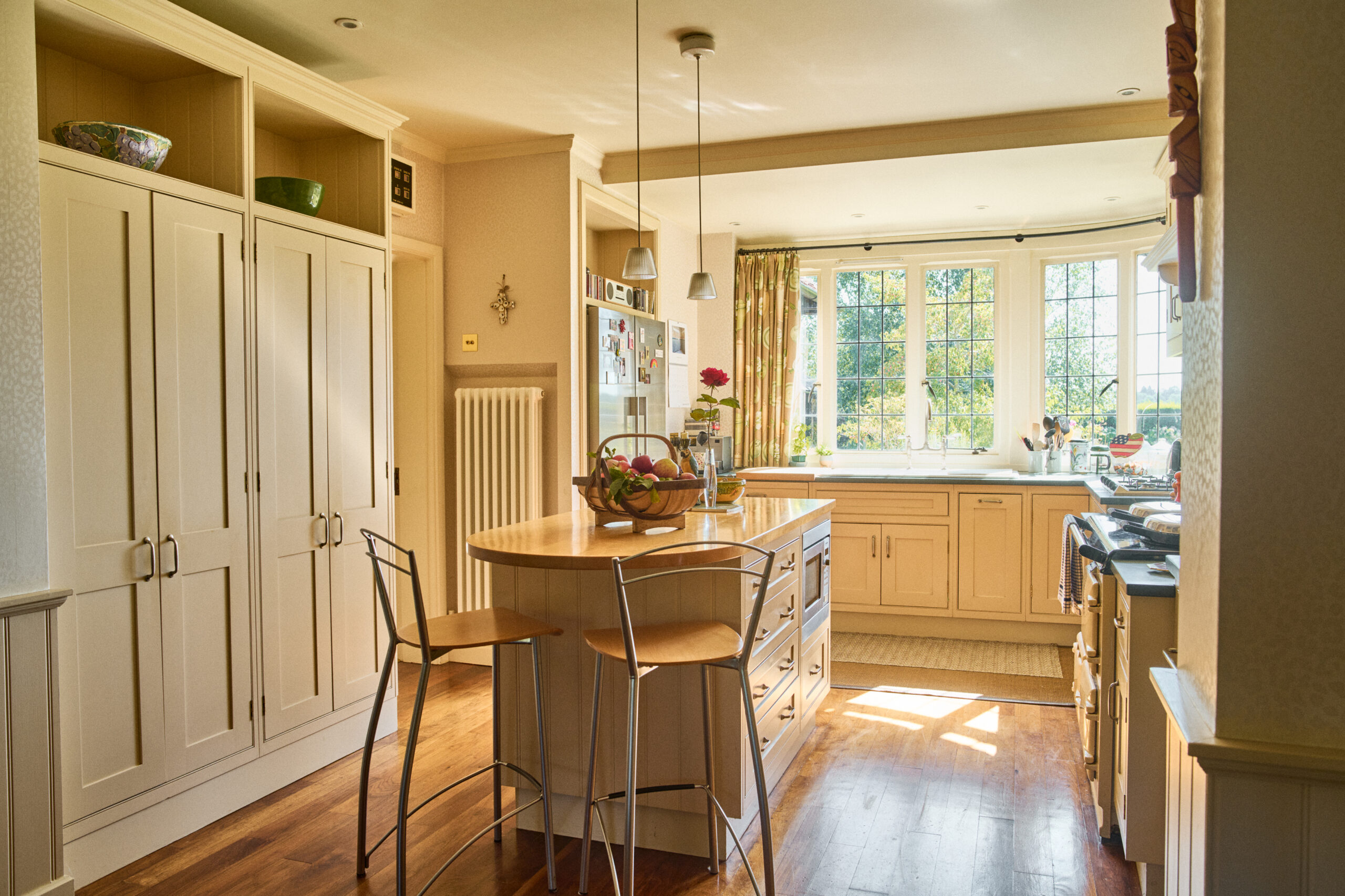 At the heart of the house is the generous kitchen. Fitted with shaker-style cabinetry and a traditional AGA, it’s a warm, sociable space that opens into a breakfast area for casual dining. Just off the kitchen, you’ll find a walk-in pantry and a separate utility room, both adding to the home’s practical appeal by keeping everyday essentials neatly tucked away. In addition to the main reception spaces, two downstairs washrooms add extra convenience for visiting guests or busy family life.